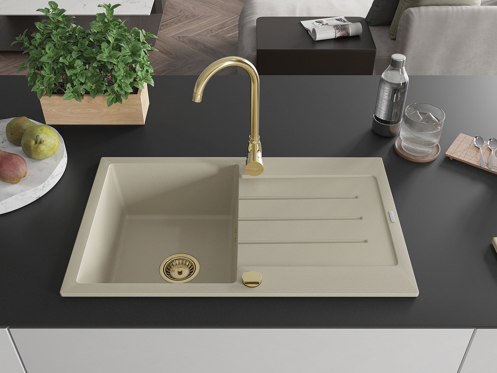 Mexen Bruno νεροχύτης από γρανίτη 1-διαμερισμάτων με χώρο αποστράγγισης