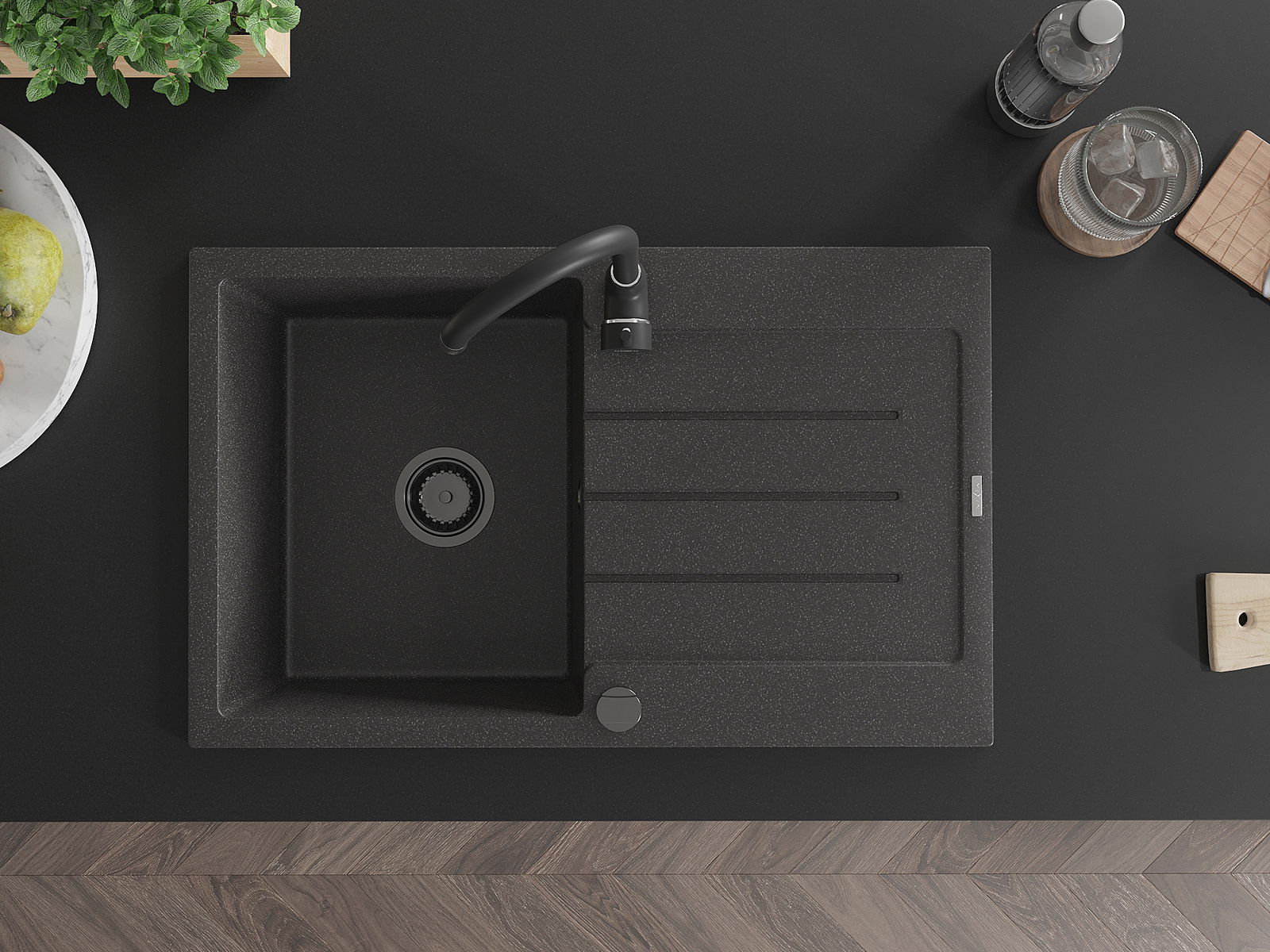 Ο νεροχύτης κατασκευάστηκε από υψηλής ποιότητας γρανίτη. Αποτελεί μια κομψή, και κυρίως πρακτική προσθήκη για κάθε κουζίνα, ανεξάρτητα από το στυλ της. Η υψηλή ποιότητα και η αντοχή του γρανίτη εξασφαλίζουν πολυετή χρήση.