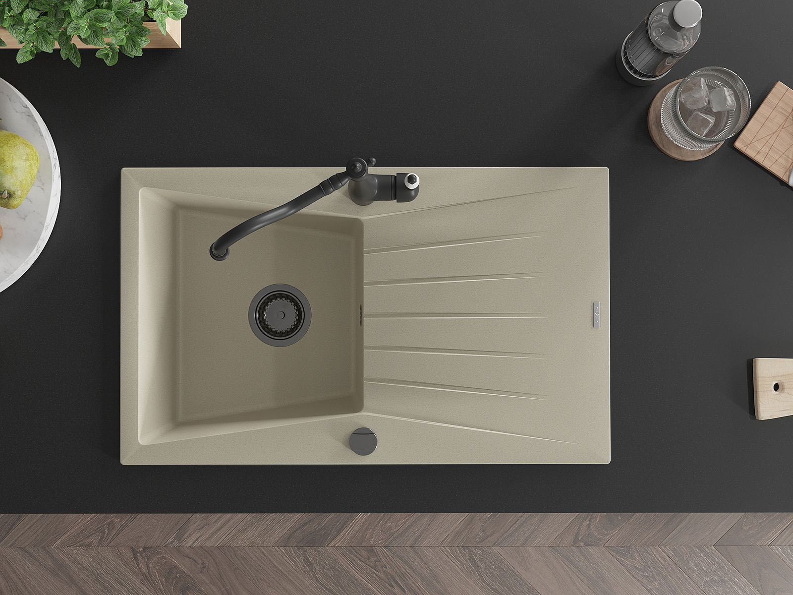 Ο νεροχύτης κατασκευάστηκε από υψηλής ποιότητας γρανίτη. Αποτελεί μια κομψή, και κυρίως πρακτική προσθήκη για κάθε κουζίνα, ανεξάρτητα από το στυλ της. Η υψηλή ποιότητα και η αντοχή του γρανίτη εξασφαλίζουν πολυετή χρήση.