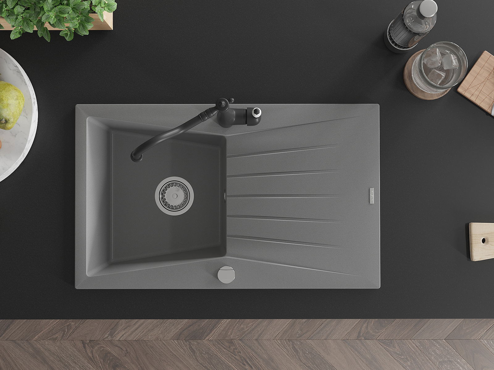 Ο νεροχύτης κατασκευάστηκε από υψηλής ποιότητας γρανίτη. Αποτελεί μια κομψή, και κυρίως πρακτική προσθήκη για κάθε κουζίνα, ανεξάρτητα από το στυλ της. Η υψηλή ποιότητα και η αντοχή του γρανίτη εξασφαλίζουν πολυετή χρήση.
