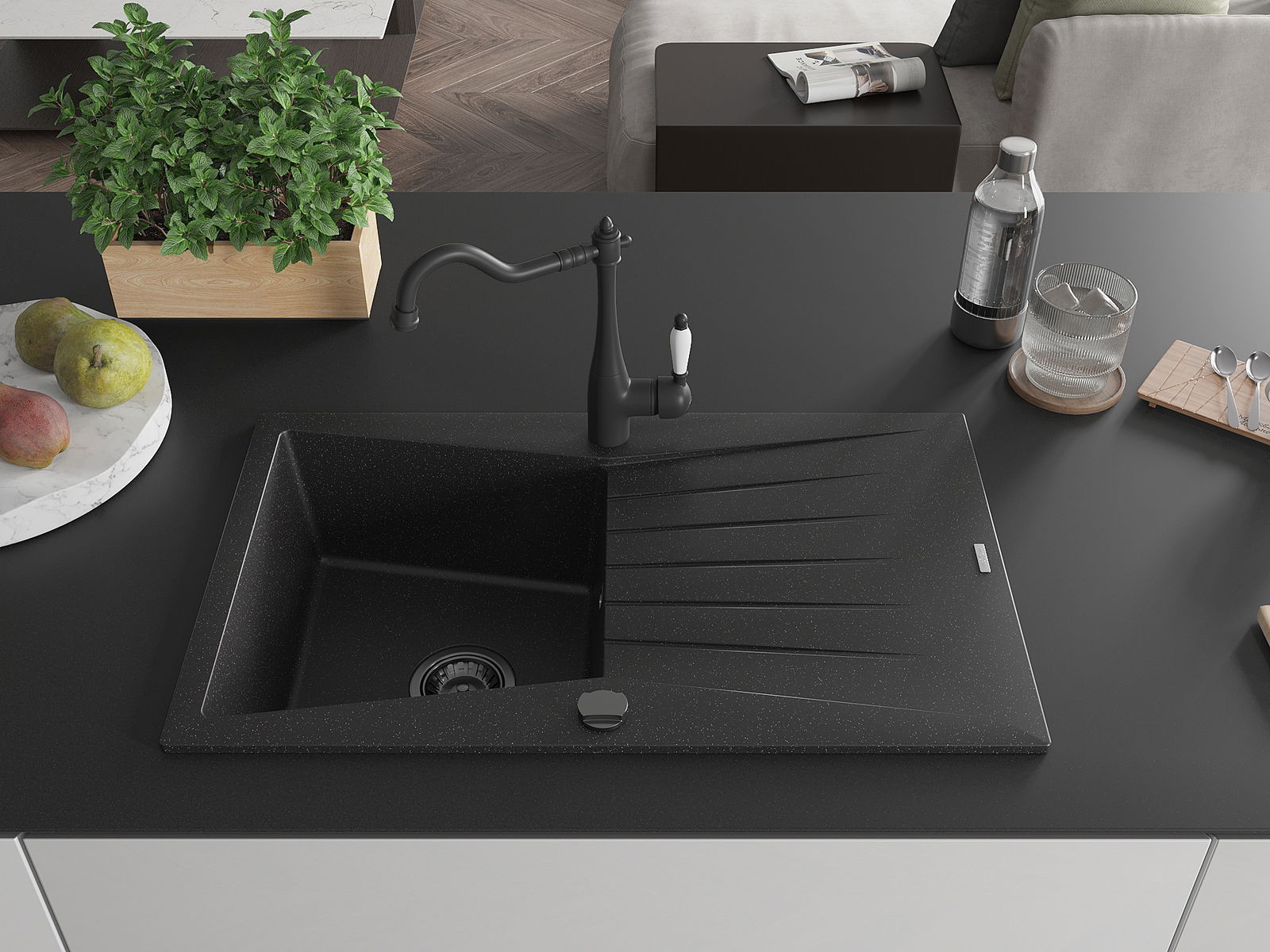 Ο νεροχύτης κατασκευάστηκε από υψηλής ποιότητας γρανίτη. Αποτελεί μια κομψή, και κυρίως πρακτική προσθήκη για κάθε κουζίνα, ανεξάρτητα από το στυλ της. Η υψηλή ποιότητα και η αντοχή του γρανίτη εξασφαλίζουν πολυετή χρήση.
