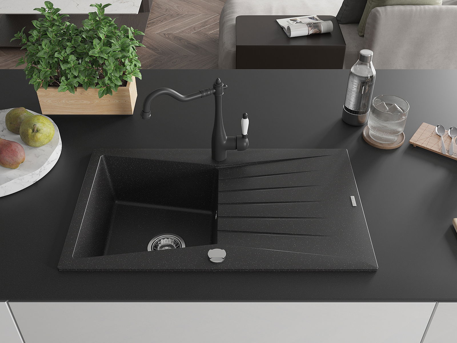 Ο νεροχύτης κατασκευάστηκε από υψηλής ποιότητας γρανίτη. Αποτελεί μια κομψή, και κυρίως πρακτική προσθήκη για κάθε κουζίνα, ανεξάρτητα από το στυλ της. Η υψηλή ποιότητα και η αντοχή του γρανίτη εξασφαλίζουν πολυετή χρήση.