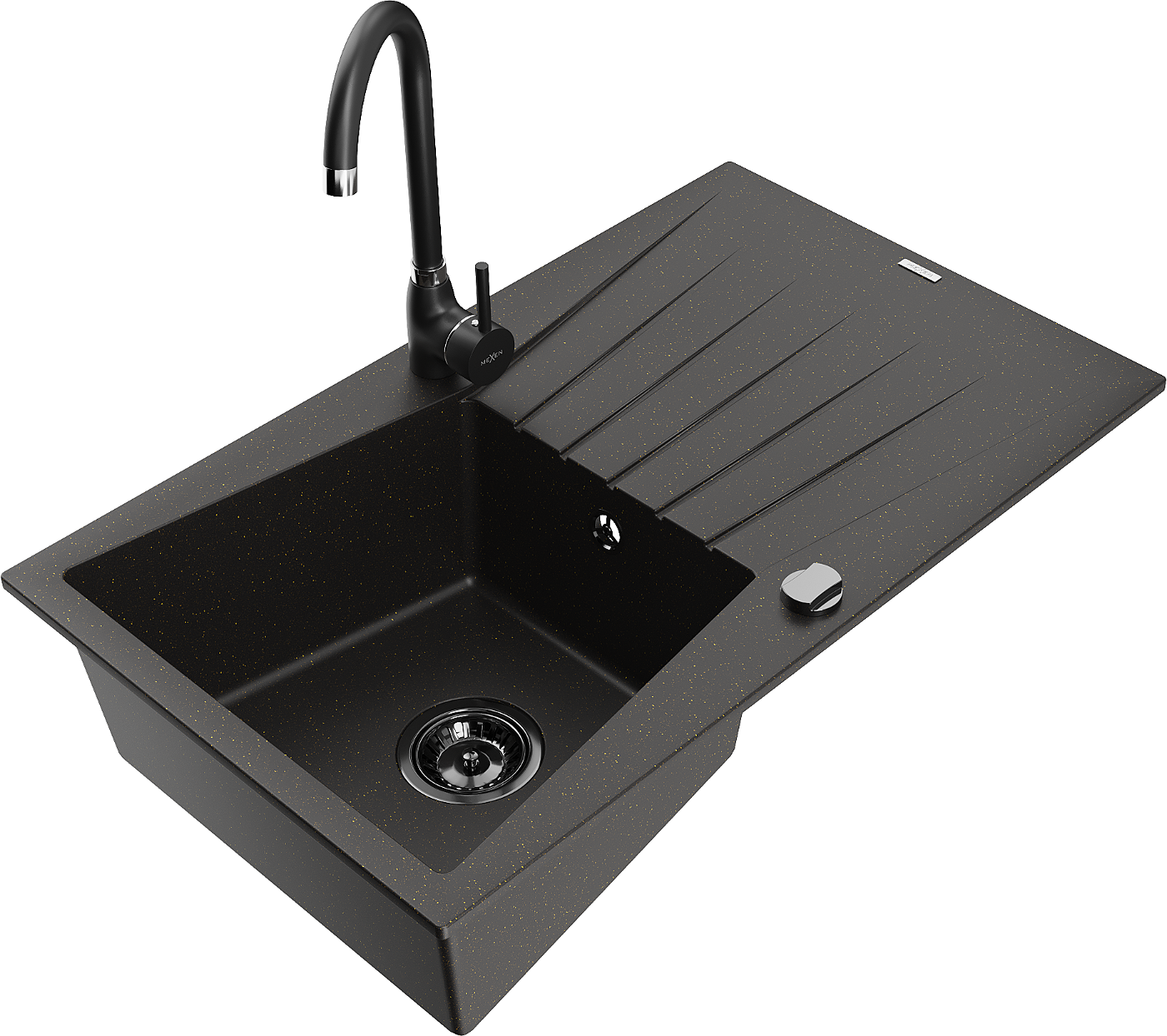 Mexen Cesar νεροχύτης γρανίτης 1-θαλάμου με στραγγιστήρα και μπαταρία