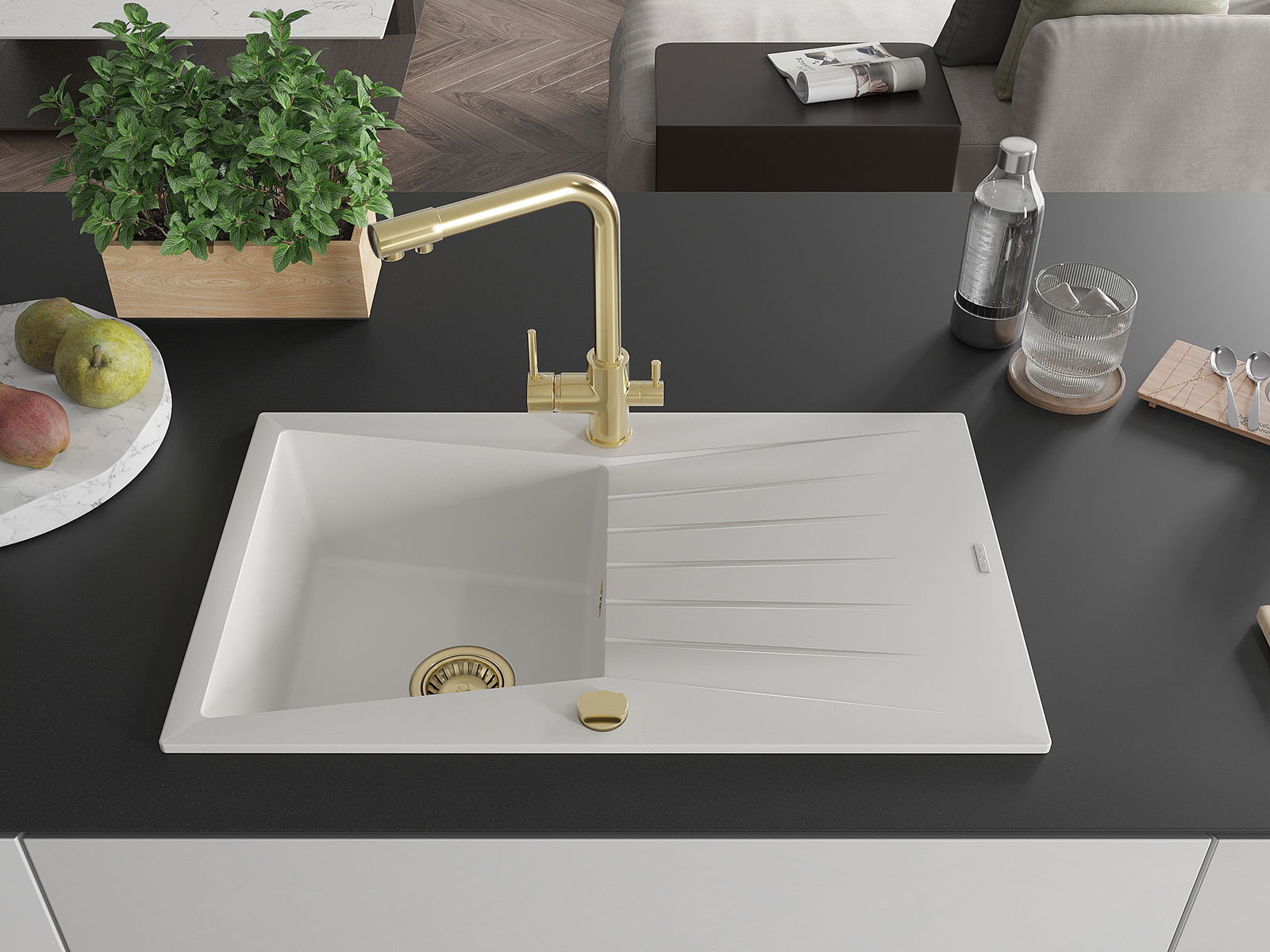 Η επιλογή ενός νεροχύτη με στραγγιστήρι είναι μια πρακτική λύση που επιτρέπει να τοποθετήσετε τα πλυμένα πιάτα ή τα λαχανικά και τα φρούτα. Το στραγγιστήρι διευκολύνει το καθημερινό μαγείρεμα και βοηθά στη διατήρηση της τάξης στην κουζίνα.