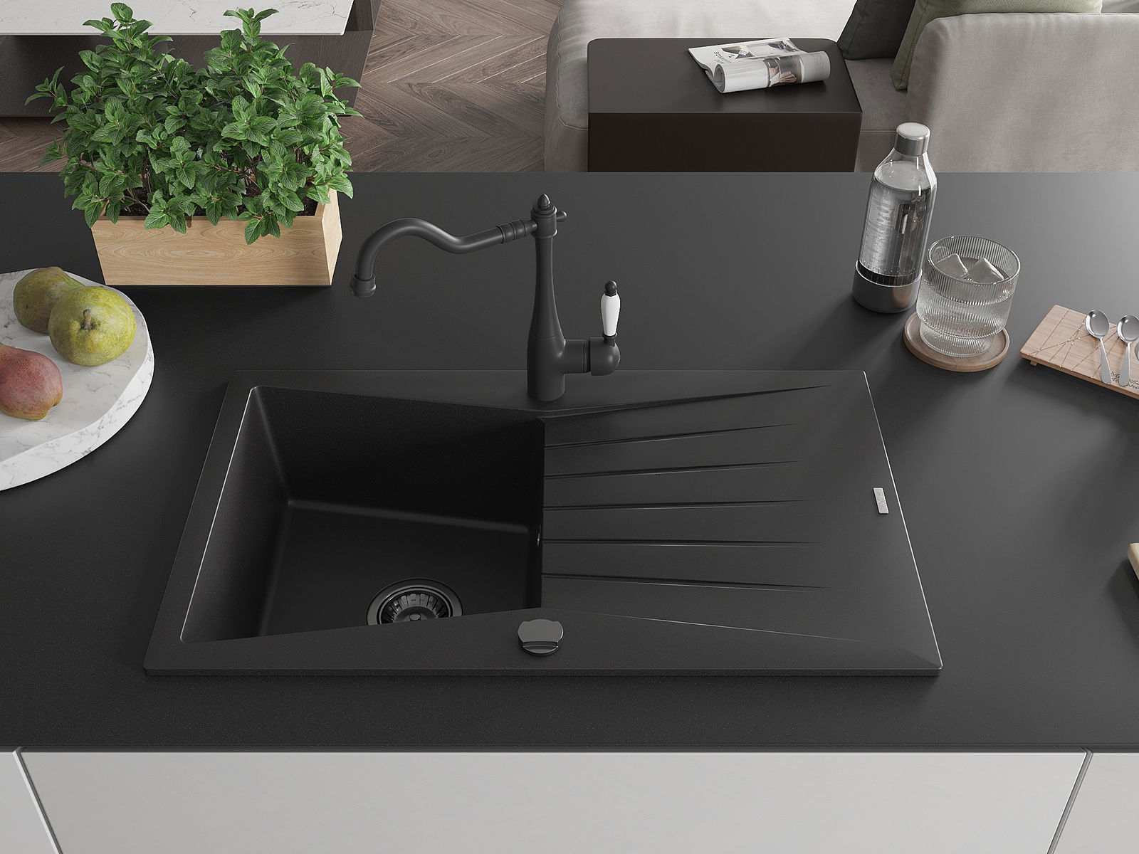 Mexen Cesar νεροχύτης από γρανίτη με 1 θάλαμο και στραγγιστήρι και μπαταρία