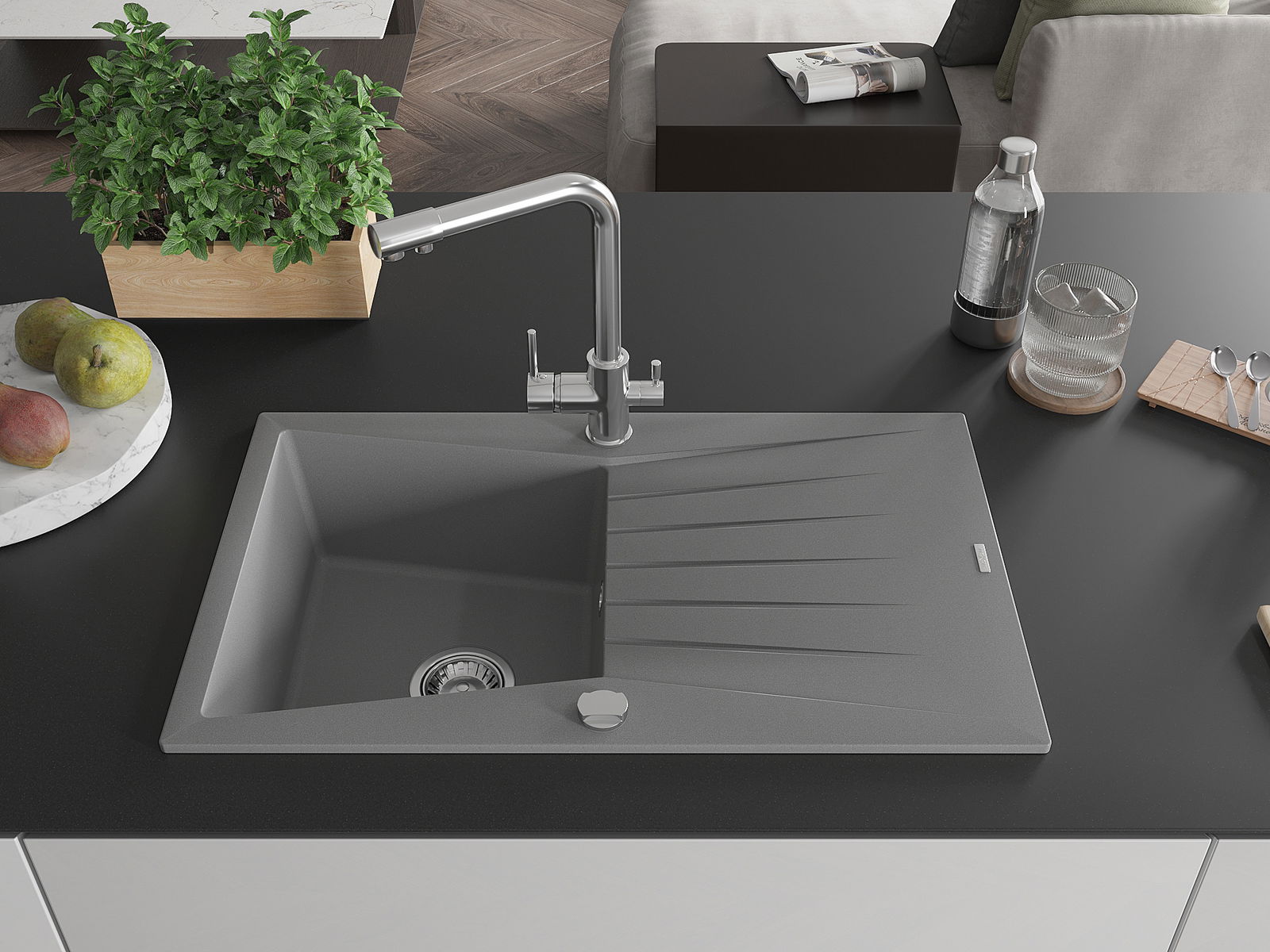 Ο νεροχύτης κατασκευάστηκε από υψηλής ποιότητας γρανίτη. Αποτελεί μια κομψή, και κυρίως πρακτική προσθήκη για κάθε κουζίνα, ανεξάρτητα από το στυλ της. Η υψηλή ποιότητα και η αντοχή του γρανίτη εξασφαλίζουν πολυετή χρήση.