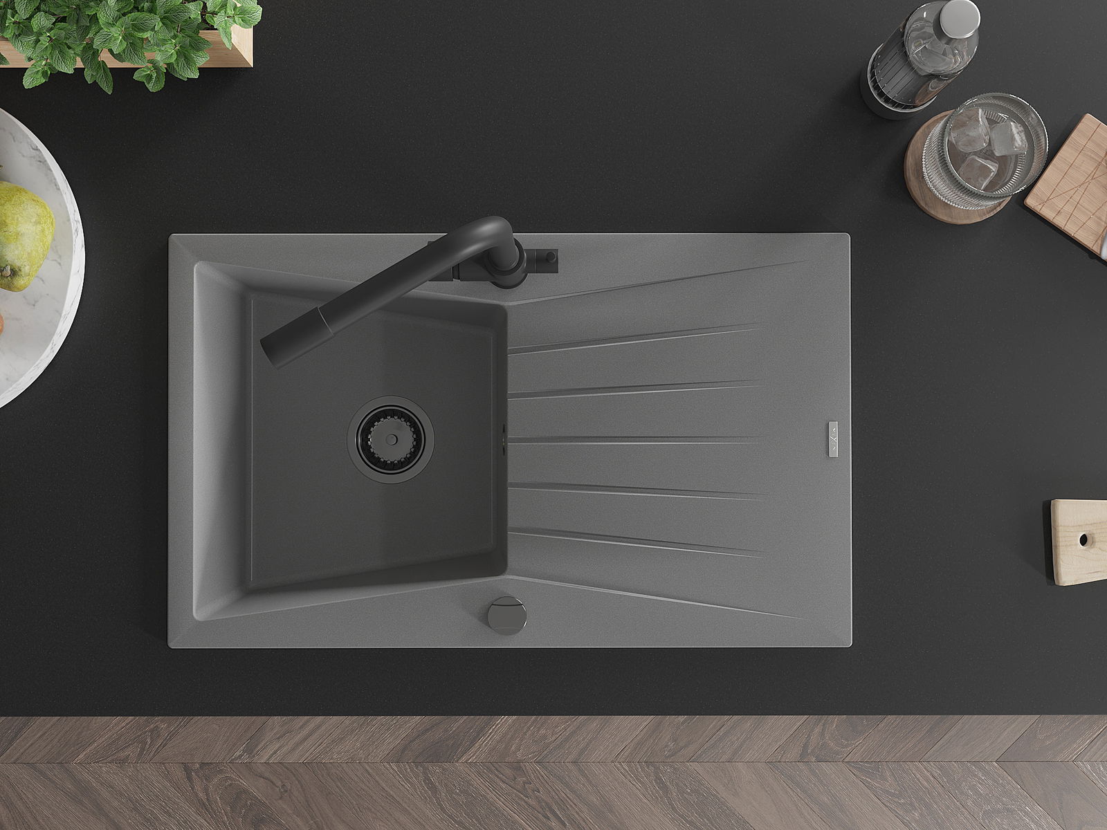 Ο νεροχύτης κατασκευάστηκε από υψηλής ποιότητας γρανίτη. Αποτελεί μια κομψή, και κυρίως πρακτική προσθήκη για κάθε κουζίνα, ανεξάρτητα από το στυλ της. Η υψηλή ποιότητα και η αντοχή του γρανίτη εξασφαλίζουν πολυετή χρήση.