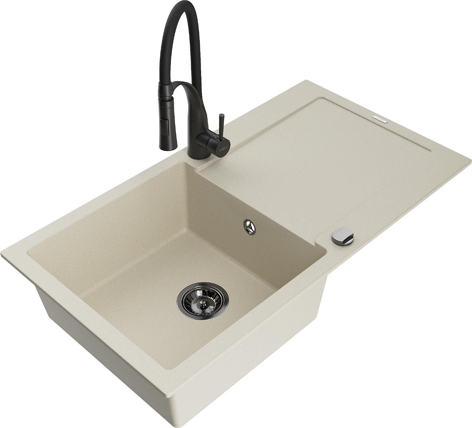 Mexen Leo νεροχύτης γρανίτης μονής λεκάνης με αποστράγγιση και μπαταρία