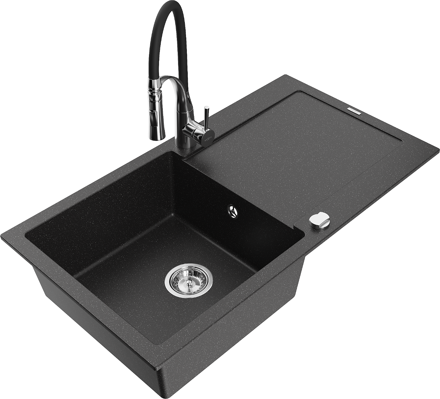 Mexen Leo νεροχύτης γρανίτης 1-χώρος με στραγγιστήρα και μπαταρία