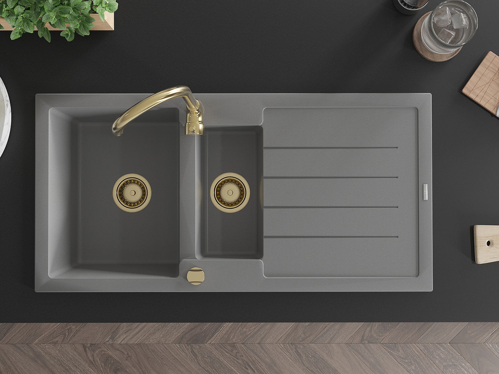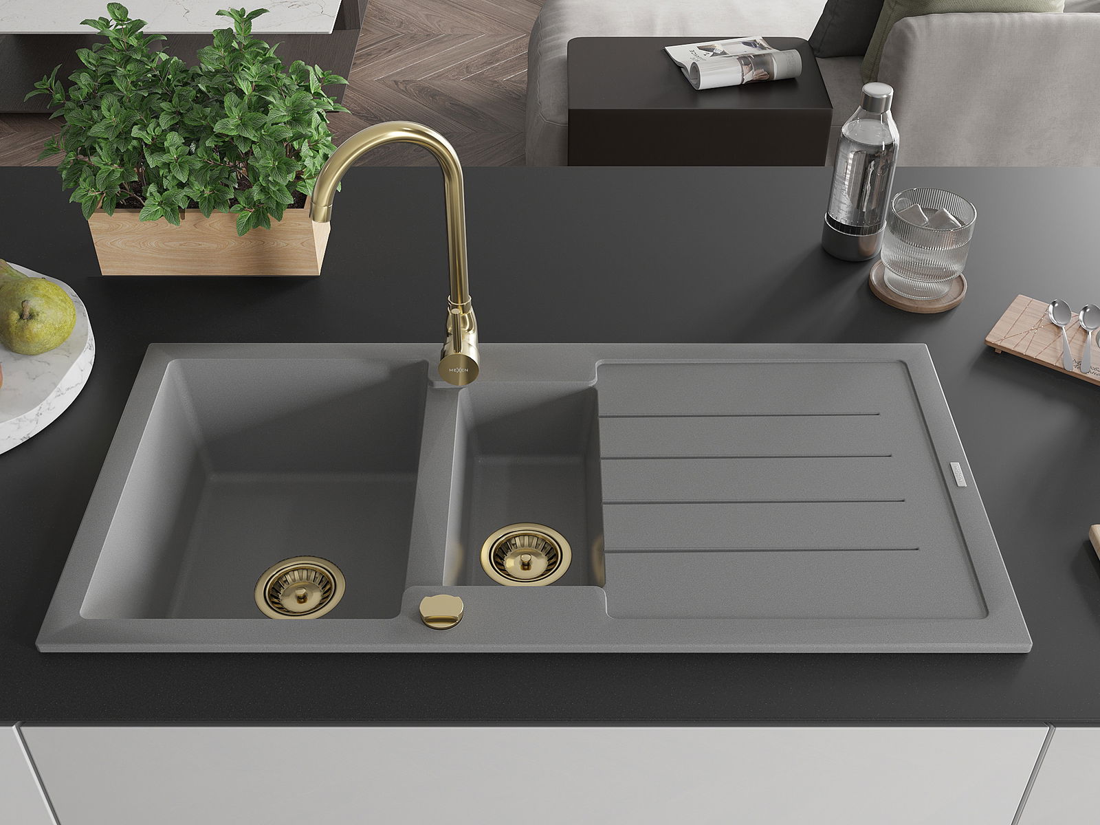 Mexen Andres Γρανιτένιος νεροχύτης 1,5 θαλάμων με αποστράγγιση και μπαταρία