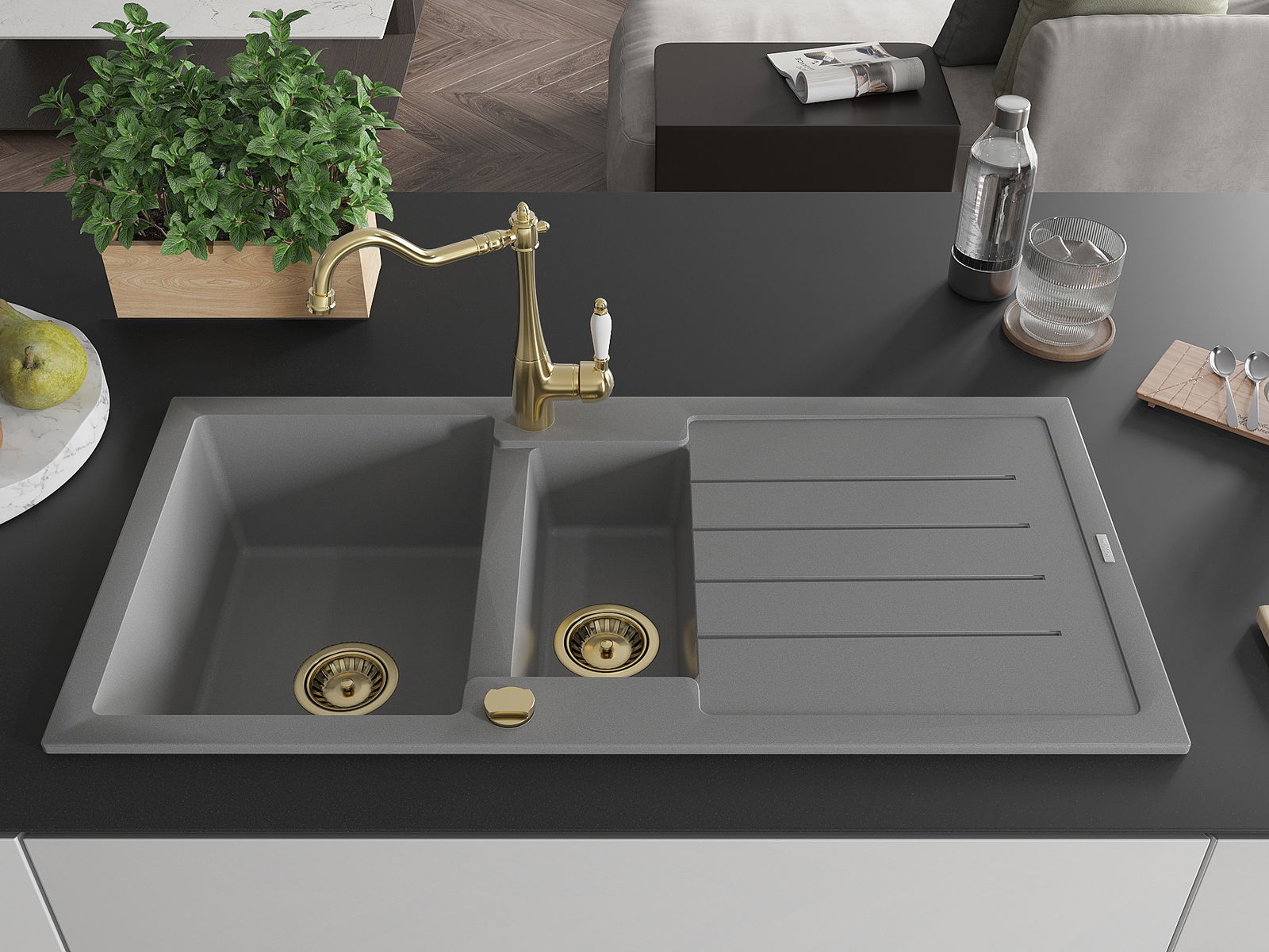 Mexen Andres νεροχύτης γρανίτης 1,5 θαλάμων με αποστραγγιστήρα και μπαταρία