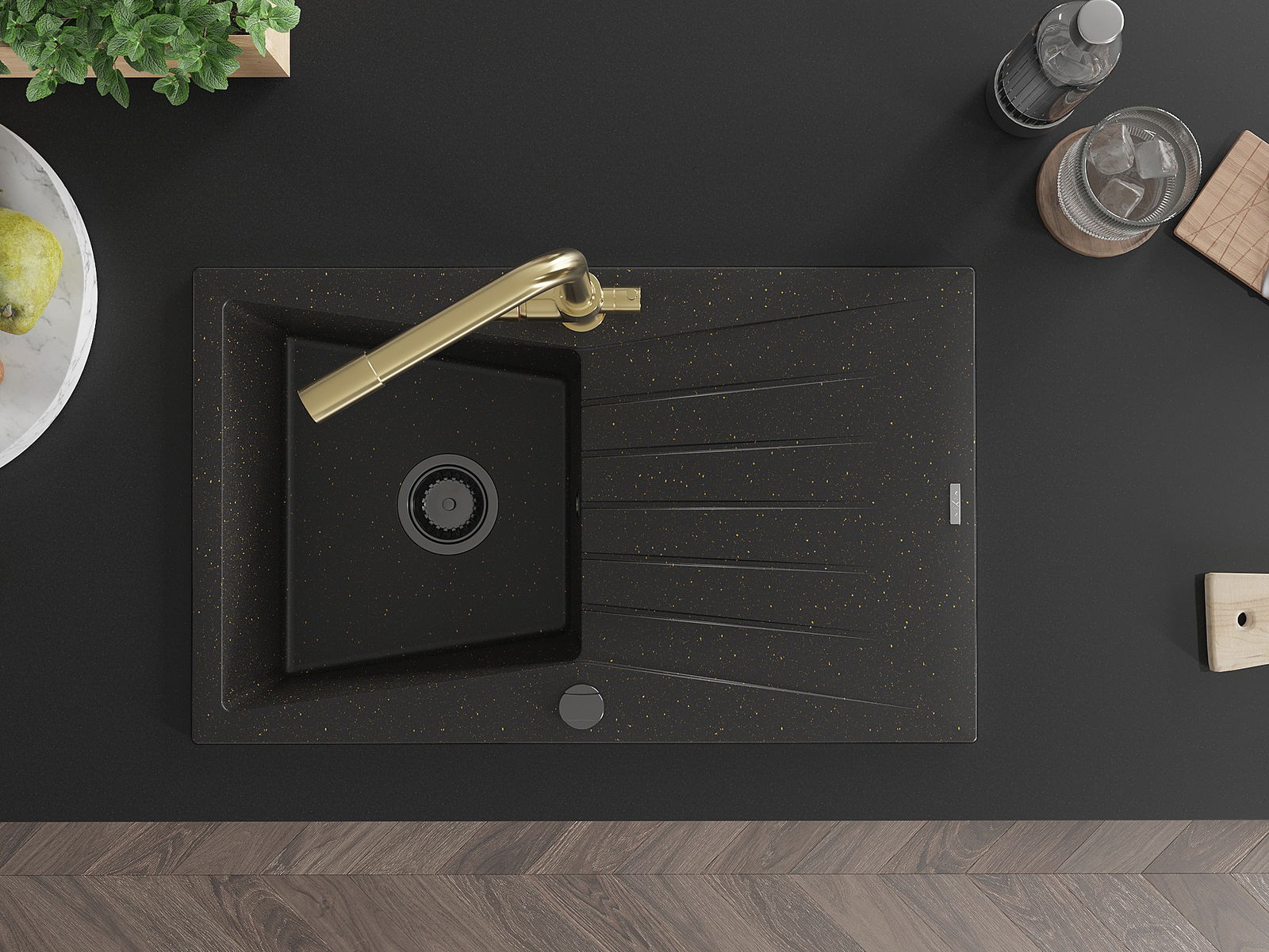 Mexen Cesar Νιπτήρας γρανίτη 1-διαμερισματικός με πλαϊνό στέγνωμα και