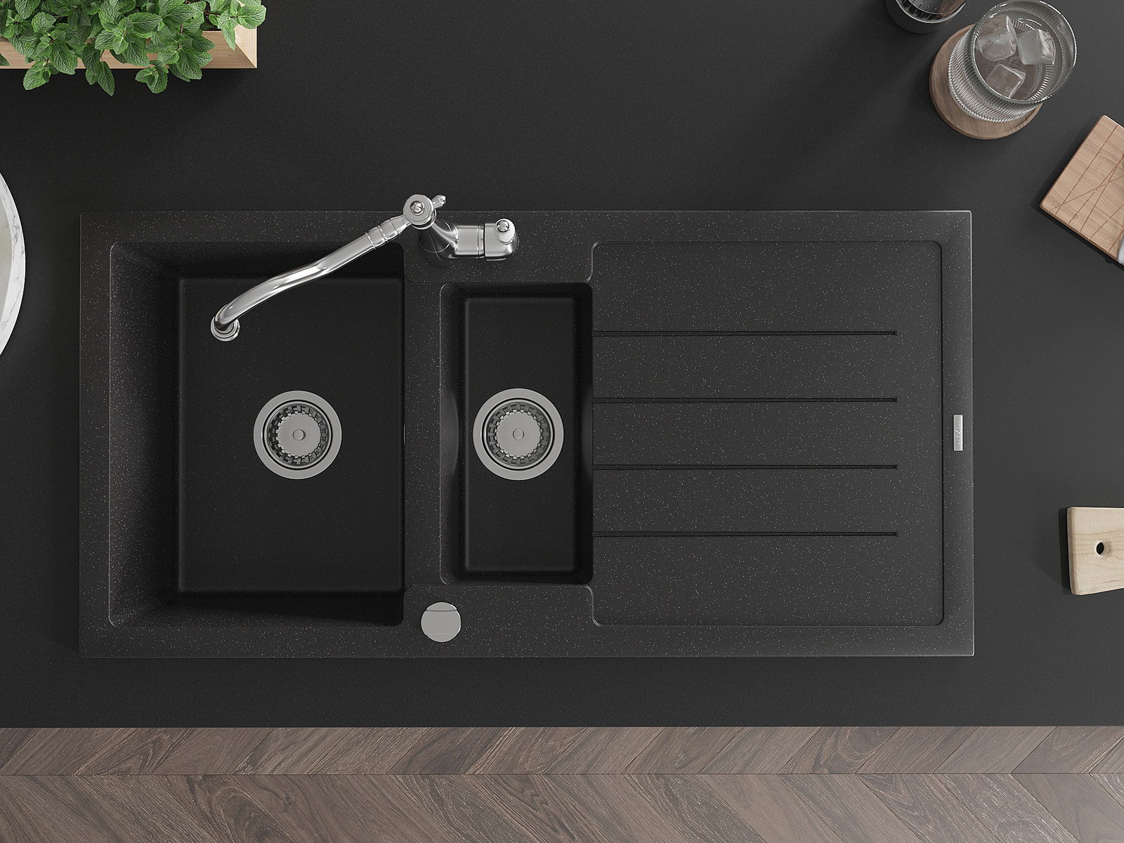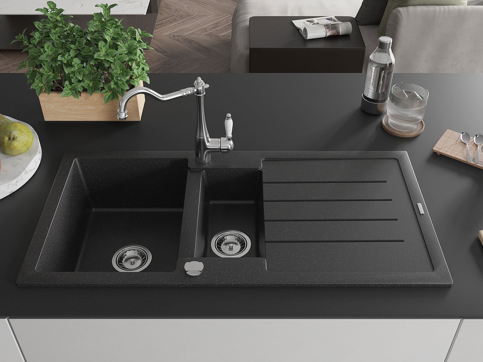 Mexen Andres νεροχύτης γρανίτης 1,5-θαλάμου με στραγγιστήρα και μπαταρία