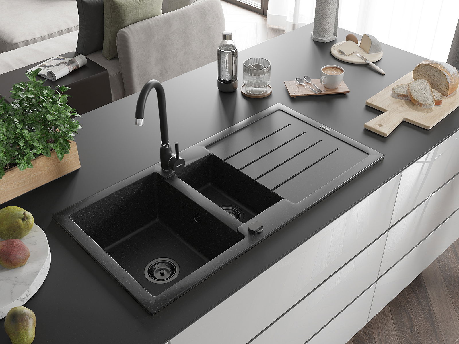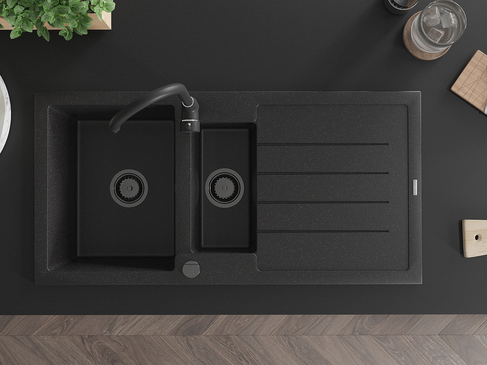 Mexen Andres Νεροχύτης γρανίτης 1,5 θαλάμων με αποστραγγιστήρα και μπαταρία