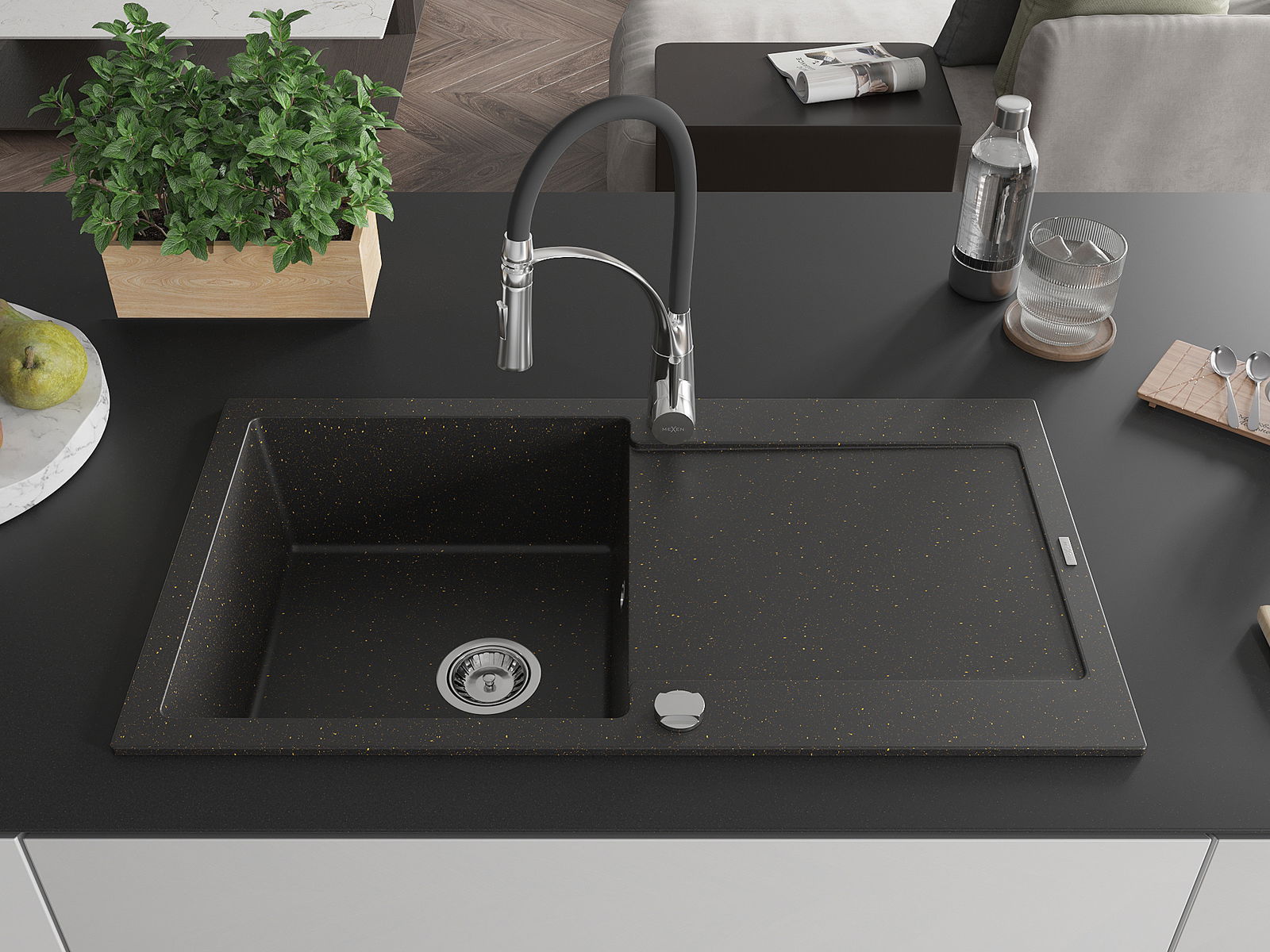 Mexen Leo νεροχύτης γρανίτης 1-θάλαμος με αποστράγγιση και μπαταρία