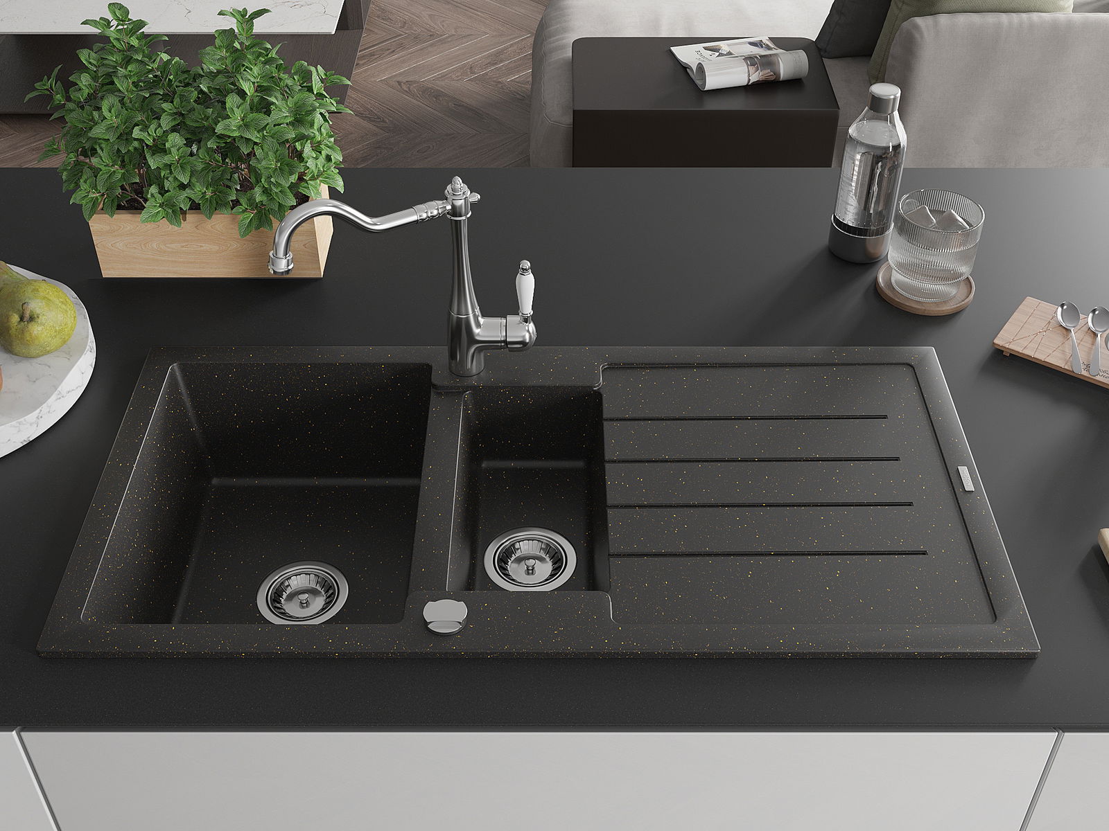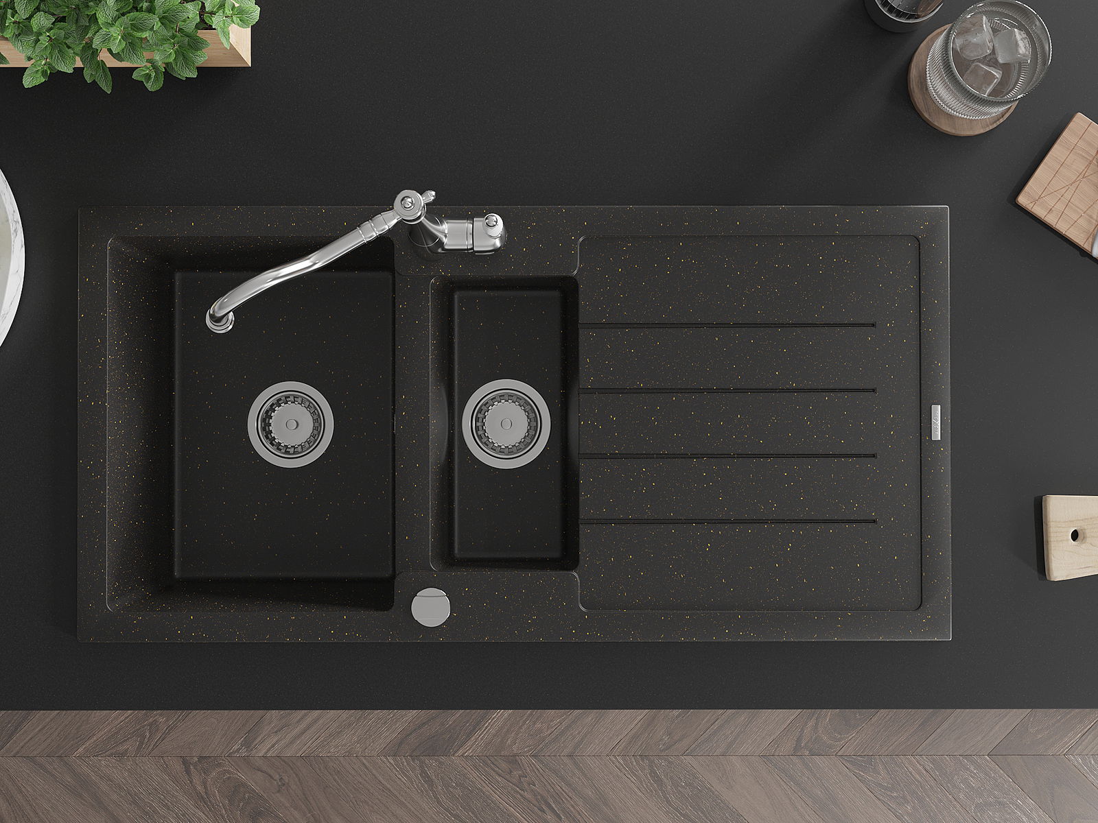 Mexen Andres νεροχύτης γρανίτης 1,5 θαλάμων με αποστράγγιση και μπαταρία