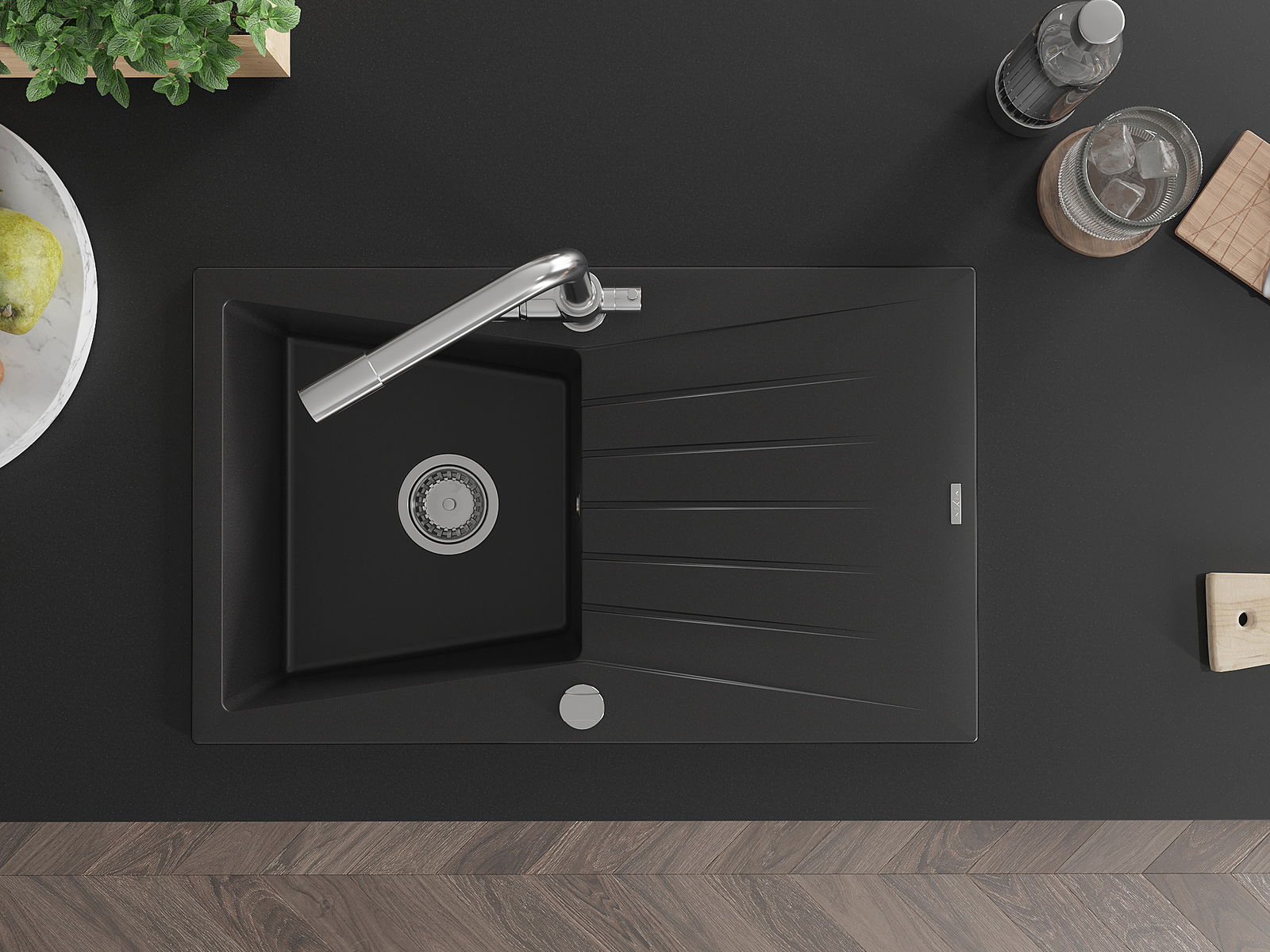 Ο νεροχύτης κατασκευάστηκε από υψηλής ποιότητας γρανίτη. Αποτελεί μια κομψή, και κυρίως πρακτική προσθήκη για κάθε κουζίνα, ανεξάρτητα από το στυλ της. Η υψηλή ποιότητα και η αντοχή του γρανίτη εξασφαλίζουν πολυετή χρήση.
