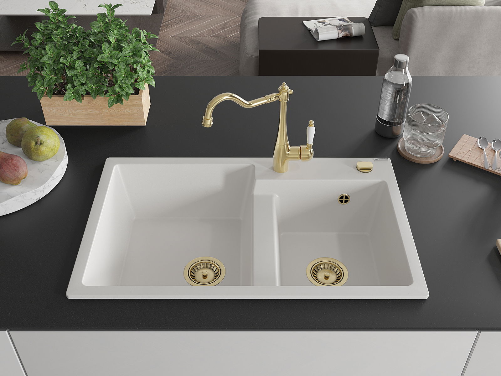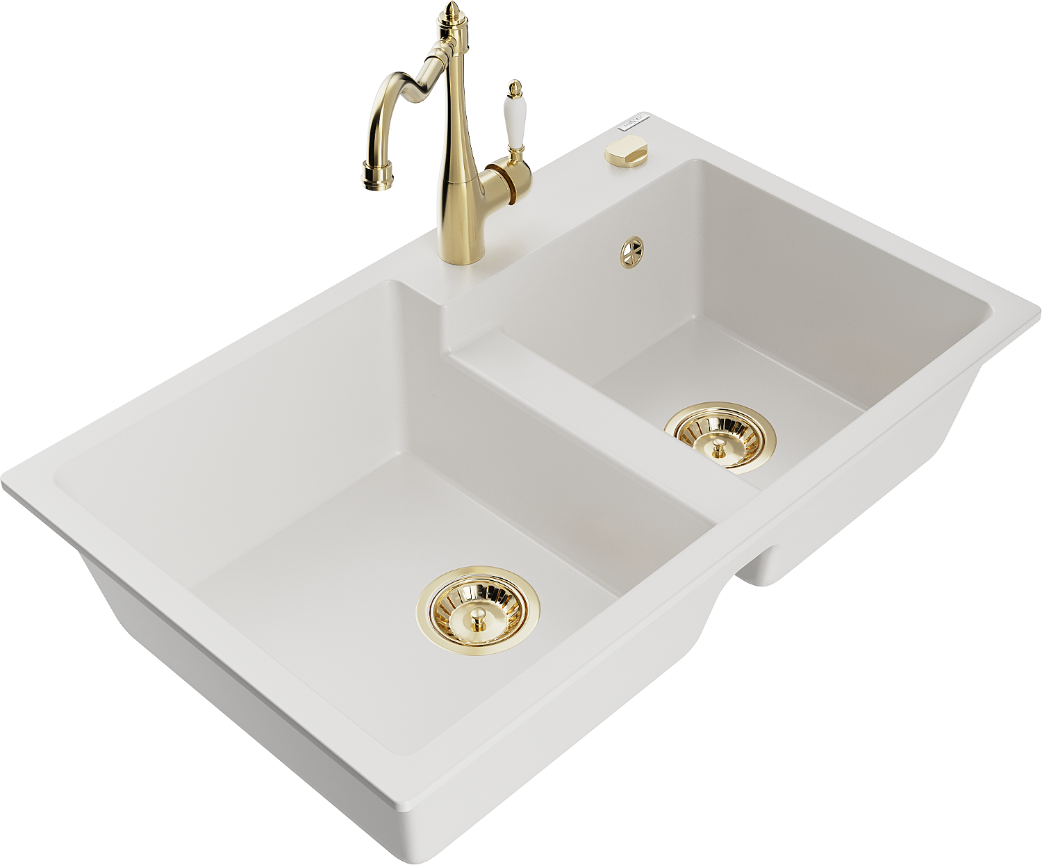 Mexen Tomas νεροχύτης γρανίτης 2-θαλάμων με μπαταρία κουζίνας Carla, λευκός