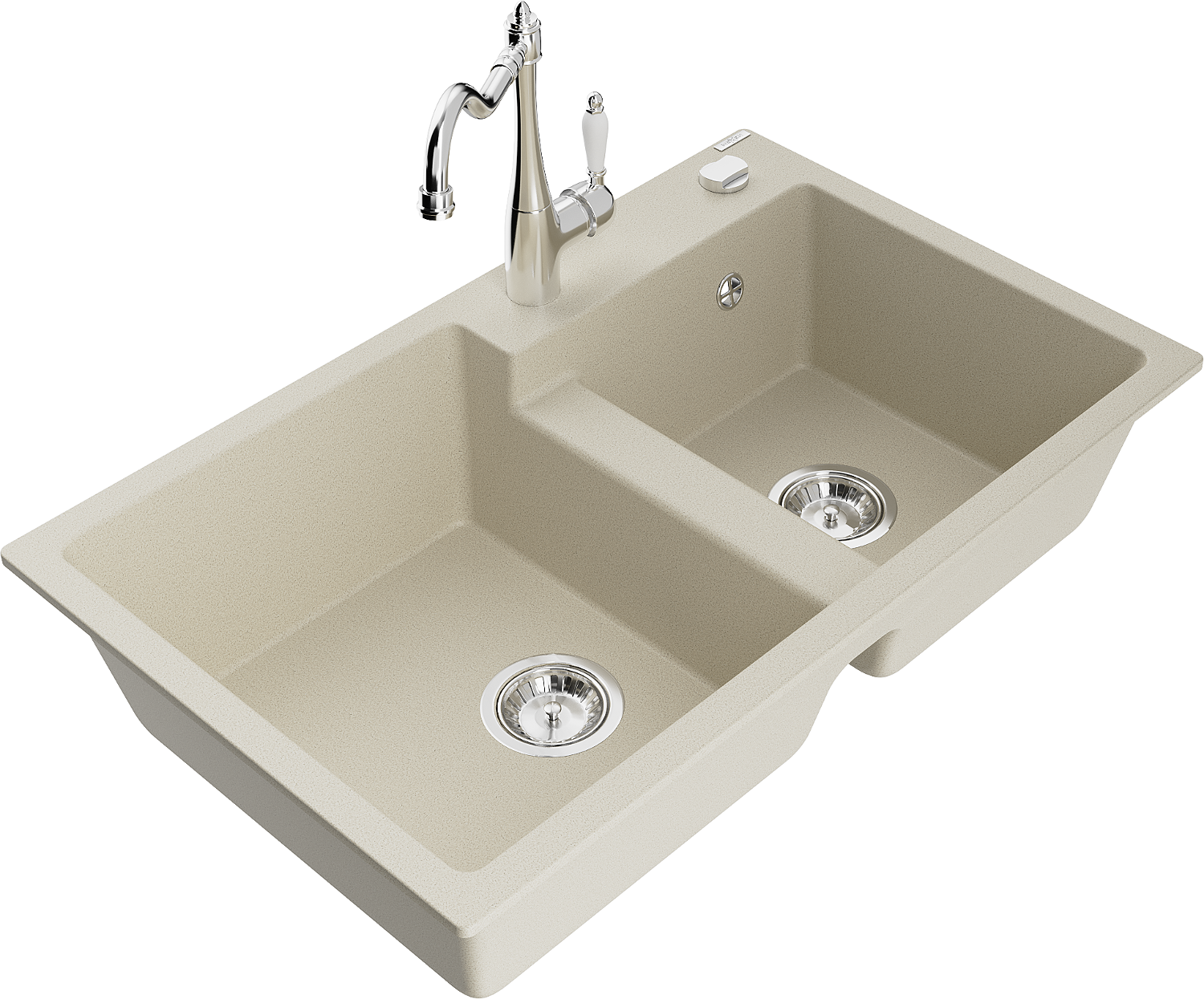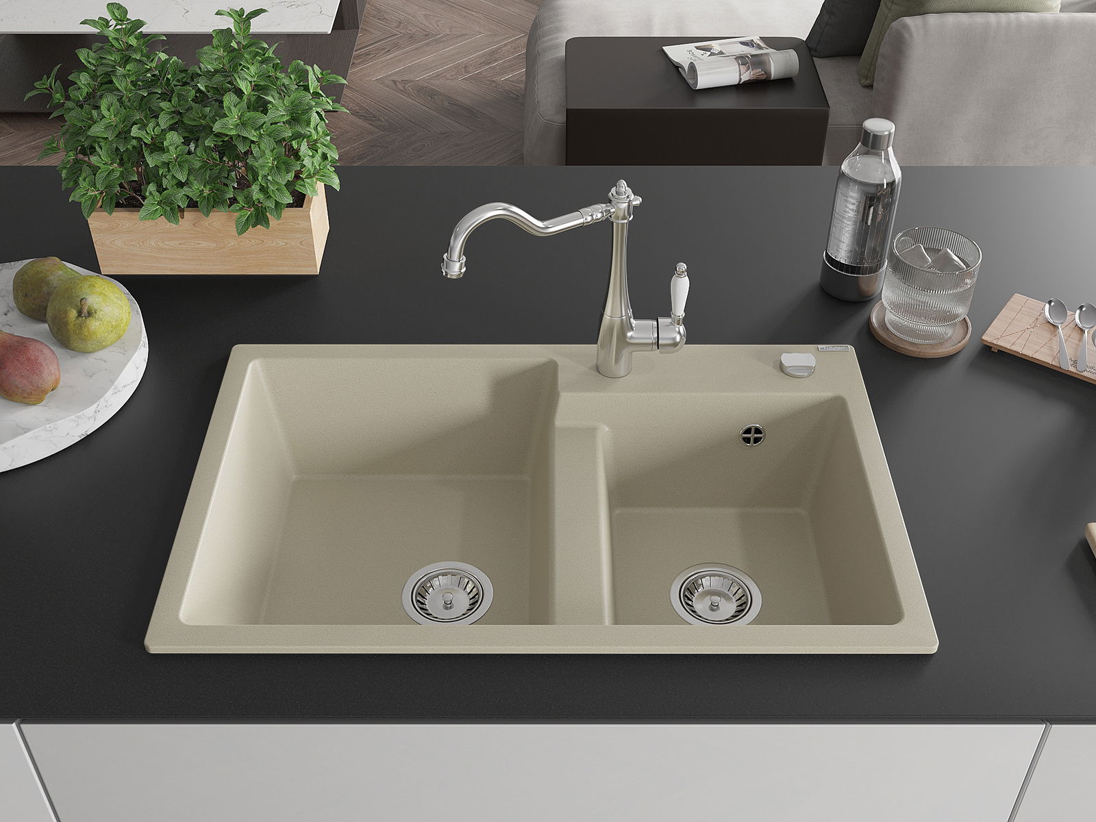 Mexen Tomas νεροχύτης γρανίτης δύο θαλάμων με μπαταρία κουζίνας Carla, μπεζ