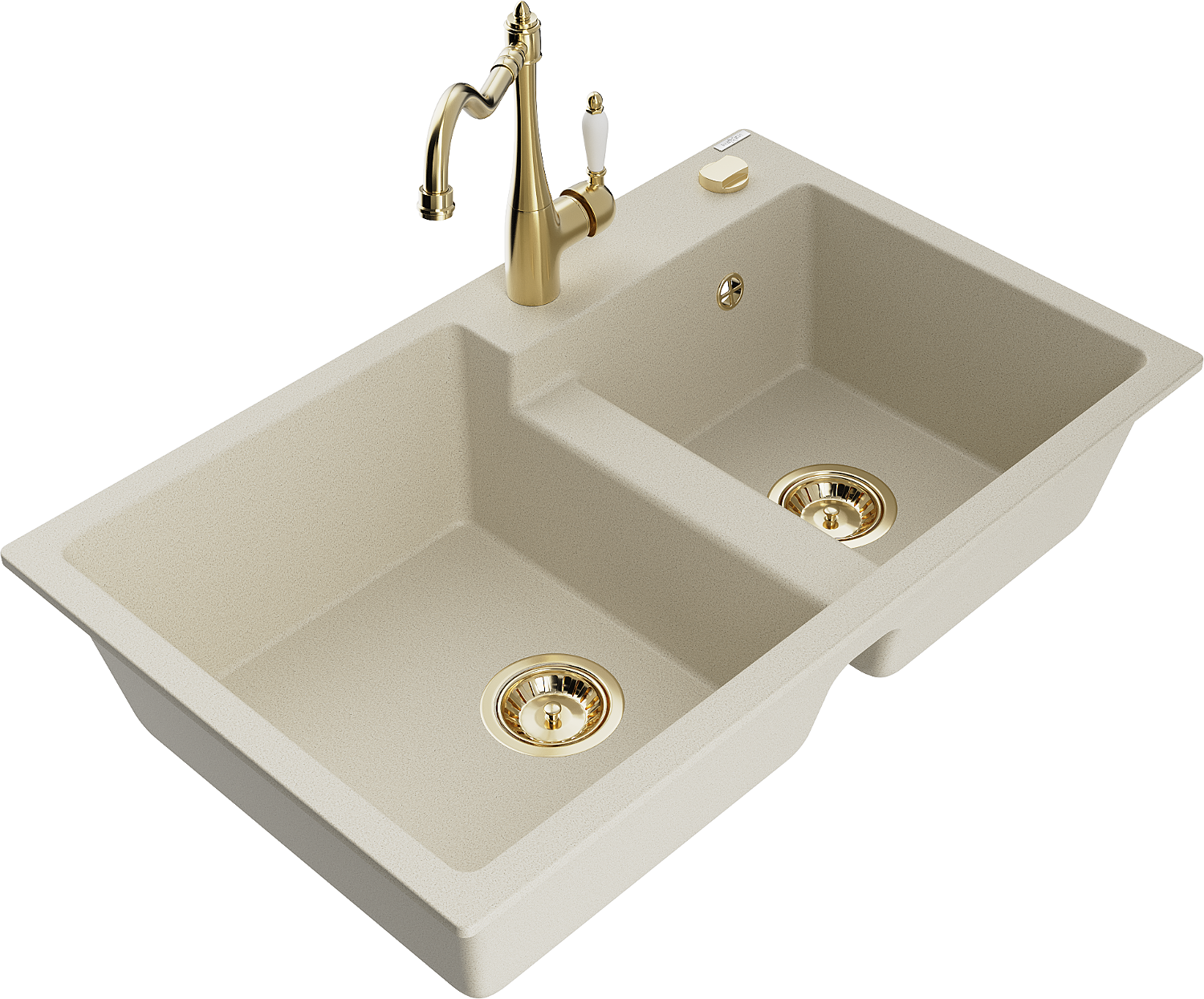 Mexen Tomas νεροχύτης γρανίτης 2-θαλάμων με μπαταρία κουζίνας Carla, μπεζ