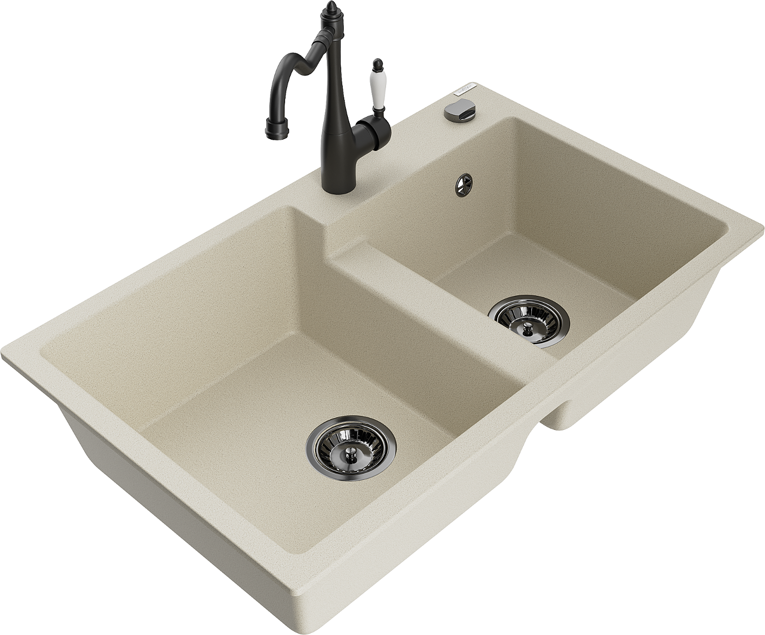 Mexen Tomas νεροχύτης γρανίτης διπλός με μπαταρία κουζίνας Carla, μπεζ