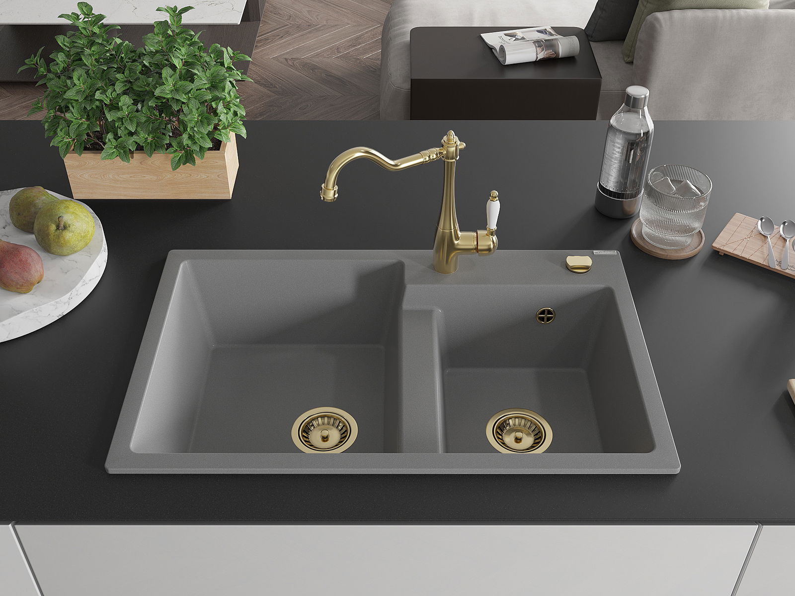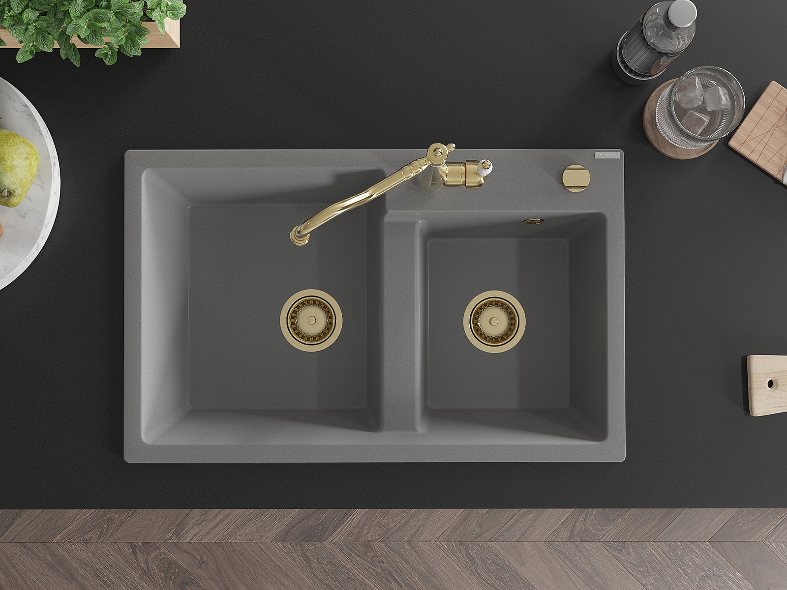 Mexen Tomas νεροχύτης γρανίτης 2-διαμερισμάτων με μπαταρία κουζίνας Carla,
