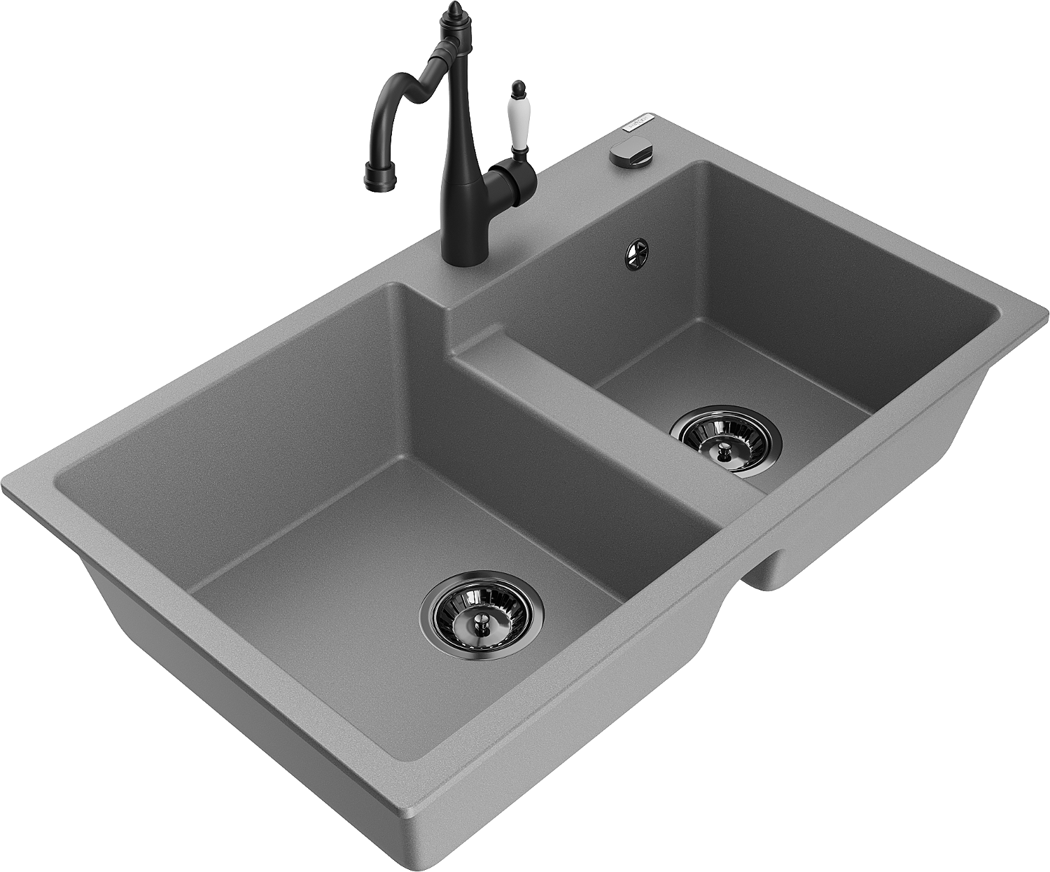 Mexen Tomas νεροχύτης γρανίτης δύο θαλάμων με μπαταρία κουζίνας Carla, γκρι