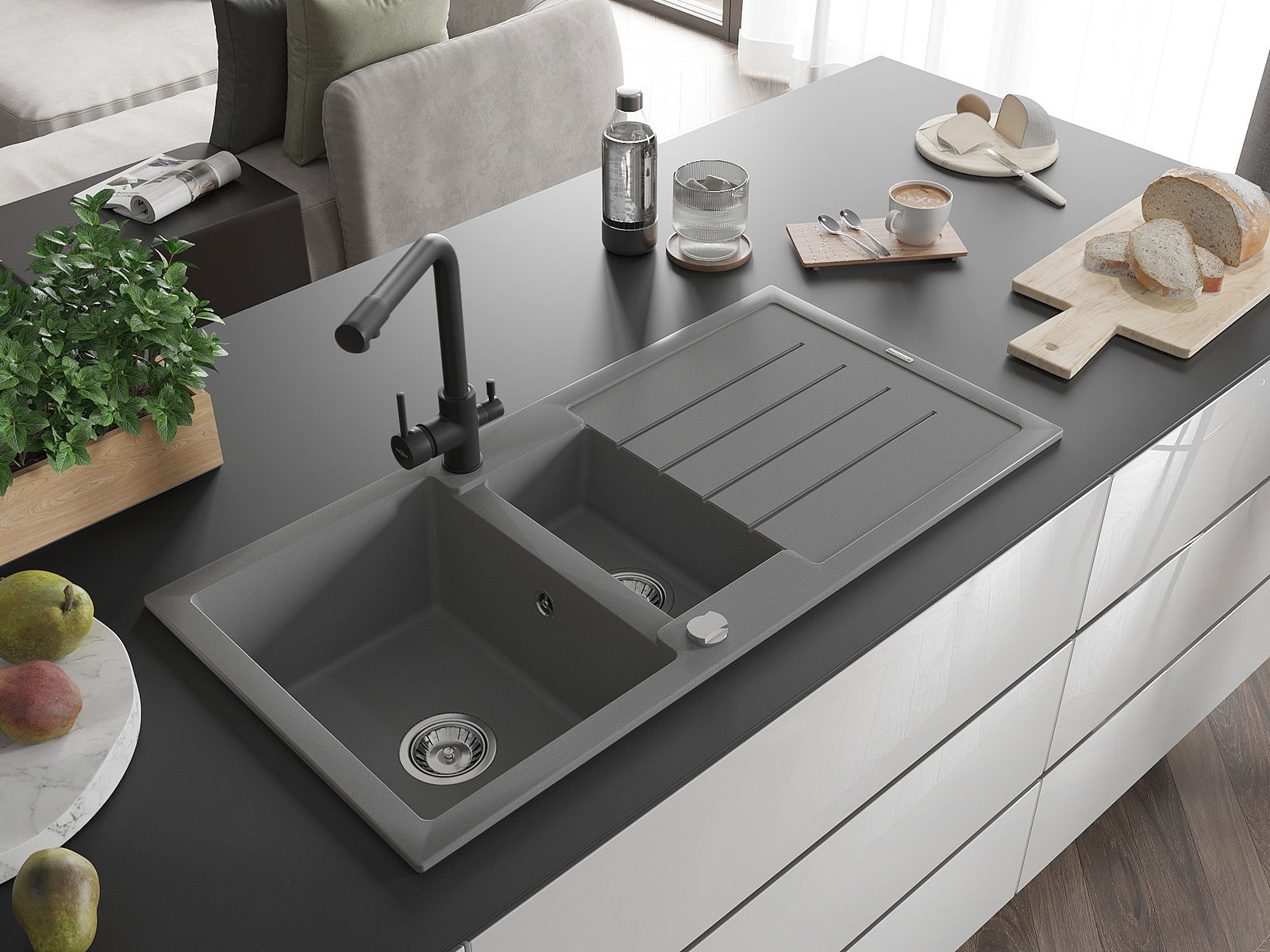 Mexen Andres νεροχύτης γρανίτης 1,5-θαλάμου με στέγνωμα και μπαταρία