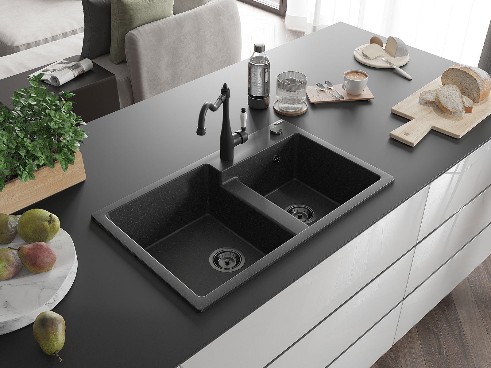 Mexen Tomas νεροχύτης γρανίτης 2-θαλάμων με μπαταρία κουζίνας Carla,