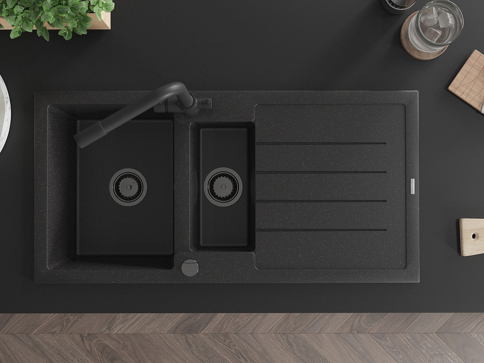 Mexen Andres νεροχύτης γρανίτης 1,5 θάλαμος με στραγγιστήρα και μπαταρία