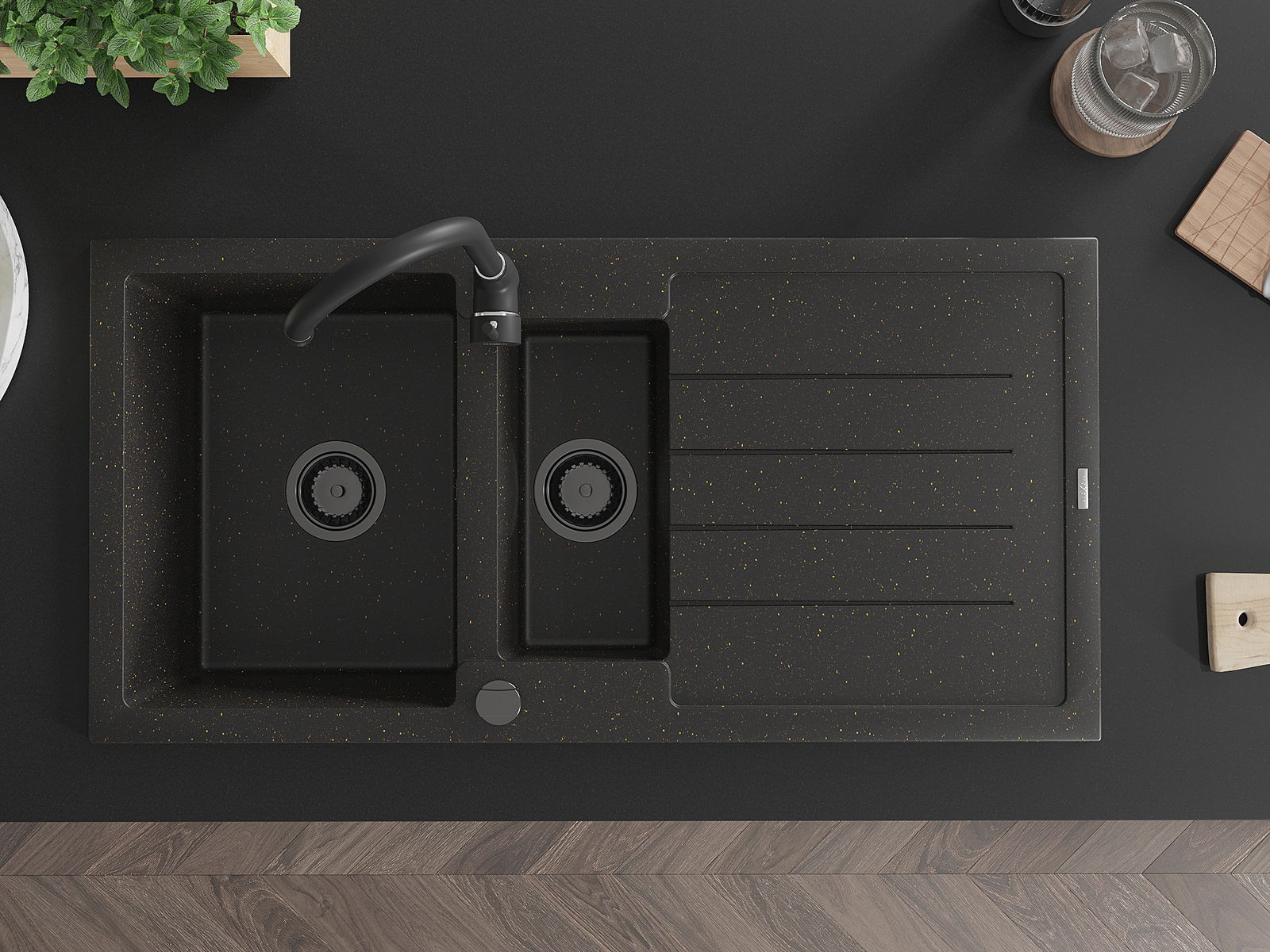 Mexen Andres νεροχύτης γρανίτης 1,5-θέσεων με αποστραγγιστήρα και μπαταρία