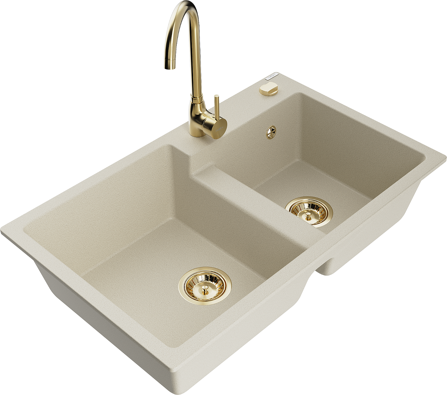 Mexen Tomas νεροχύτης γρανίτης 2-θαλάμων με μπαταρία κουζίνας Telma, μπεζ