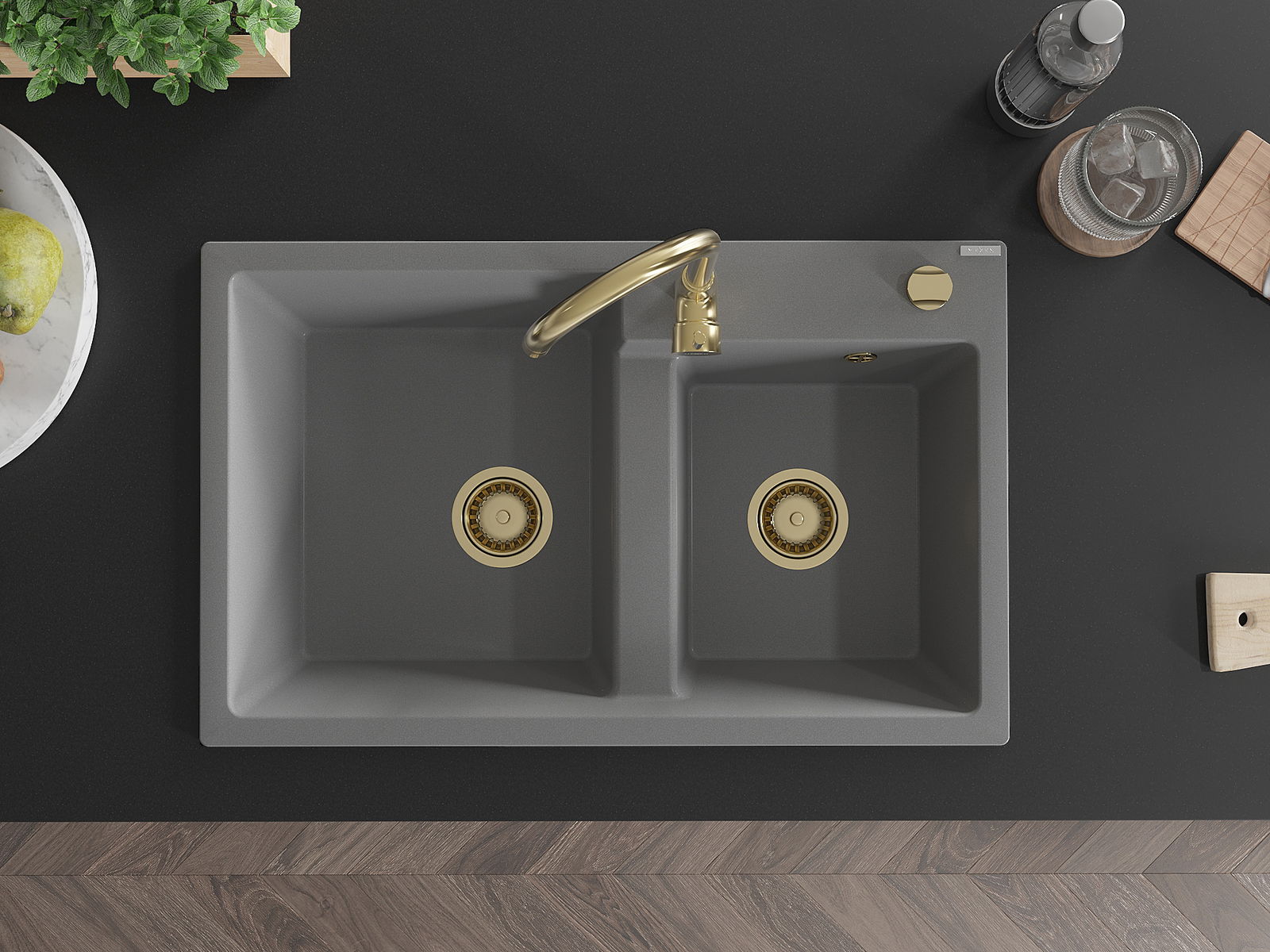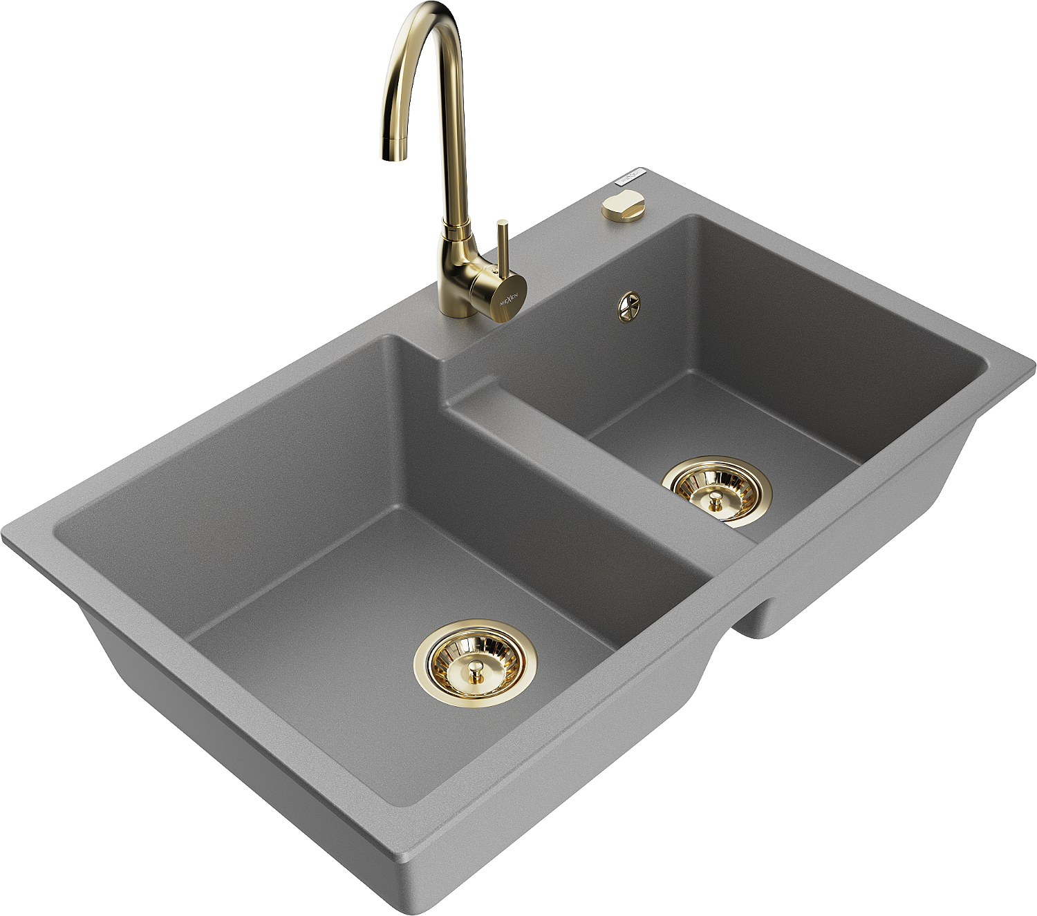 Mexen Tomas Γρανιτένιος νεροχύτης 2 θαλάμων με μπαταρία κουζίνας Telma, γκρι