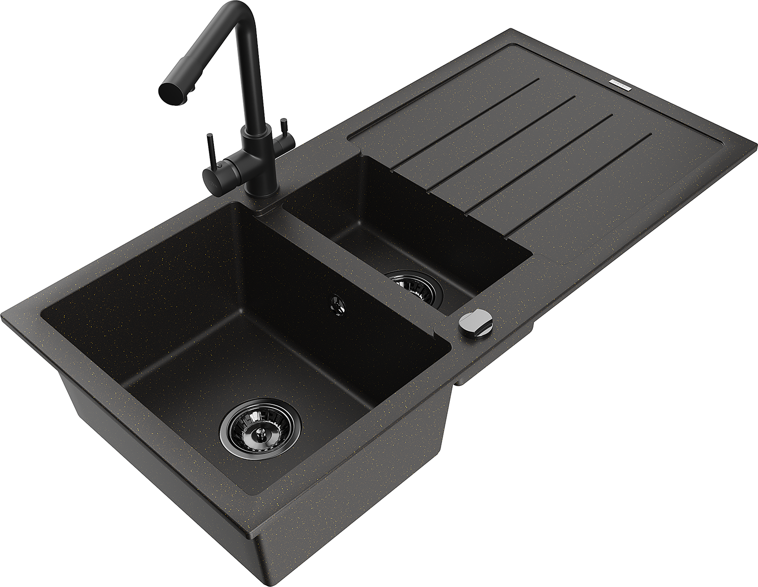 Mexen Andres νεροχύτης γρανίτης 1,5 θαλάμου με λεκάνη αποστράγγισης και