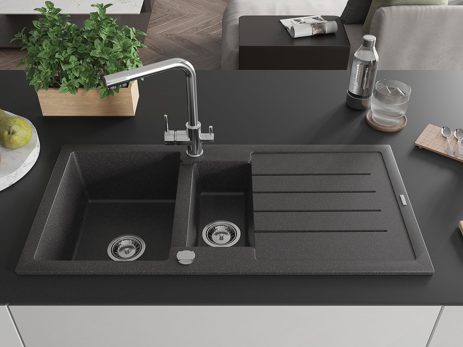 Mexen Andres νεροχύτης γρανίτη 1,5 διαμερισμάτων με στραγγιστήρι και