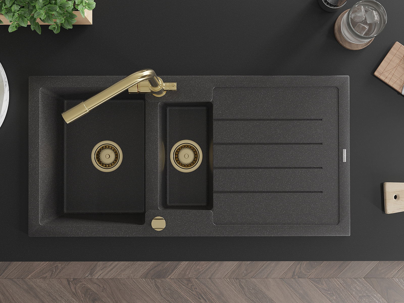 Mexen Andres νεροχύτης γρανίτης 1,5-θαλάμων με αποστράγγιση και μπαταρία