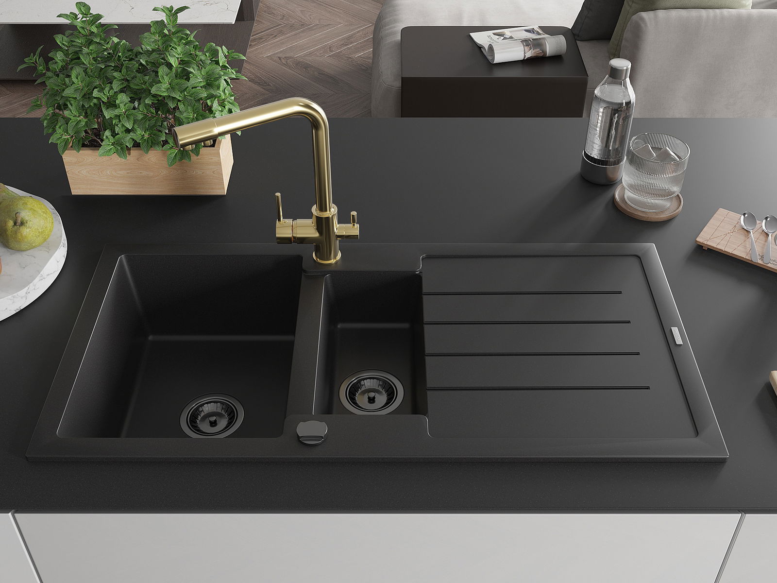 Η επιλογή ενός νεροχύτη με στραγγιστήρι είναι μια πρακτική λύση που επιτρέπει να τοποθετήσετε τα πλυμένα πιάτα ή τα λαχανικά και τα φρούτα. Το στραγγιστήρι διευκολύνει το καθημερινό μαγείρεμα και βοηθά στη διατήρηση της τάξης στην κουζίνα.