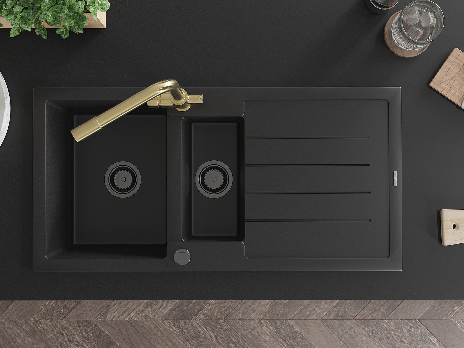 Mexen Andres νεροχύτης γρανίτη 1,5-θαλάμων με αποστράγγιση και μπαταρία