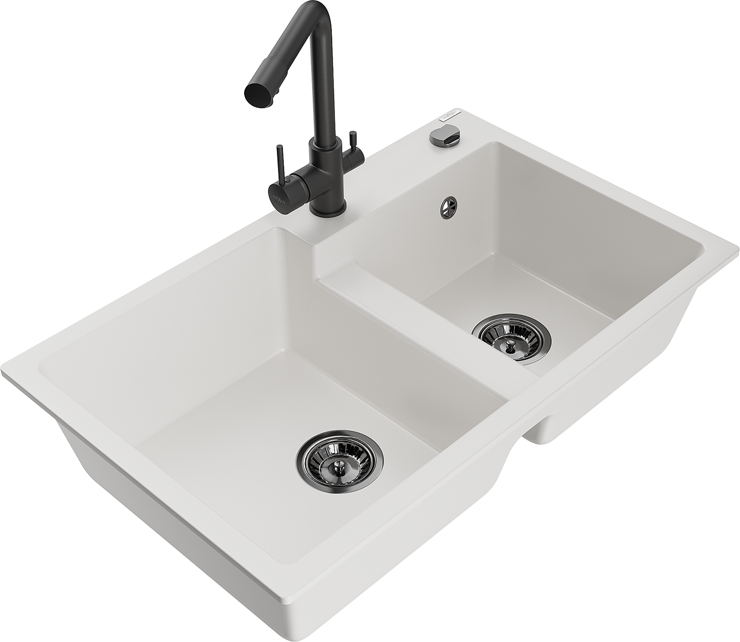 Mexen Tomas νεροχύτης γρανίτης διπλής λεκάνης με μπαταρία κουζίνας Duero,