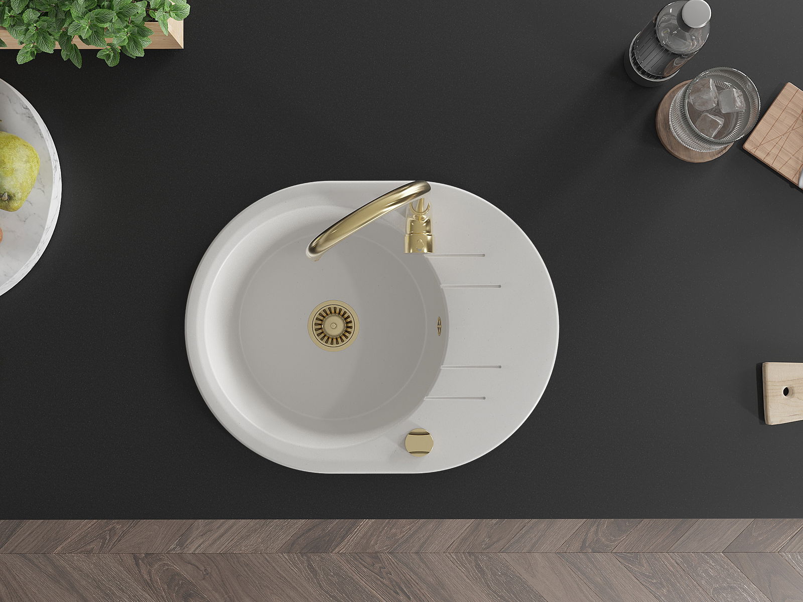 Ο νεροχύτης κατασκευάστηκε από υψηλής ποιότητας γρανίτη. Αποτελεί μια κομψή, και κυρίως πρακτική προσθήκη για κάθε κουζίνα, ανεξάρτητα από το στυλ της. Η υψηλή ποιότητα και η αντοχή του γρανίτη εξασφαλίζουν πολυετή χρήση.