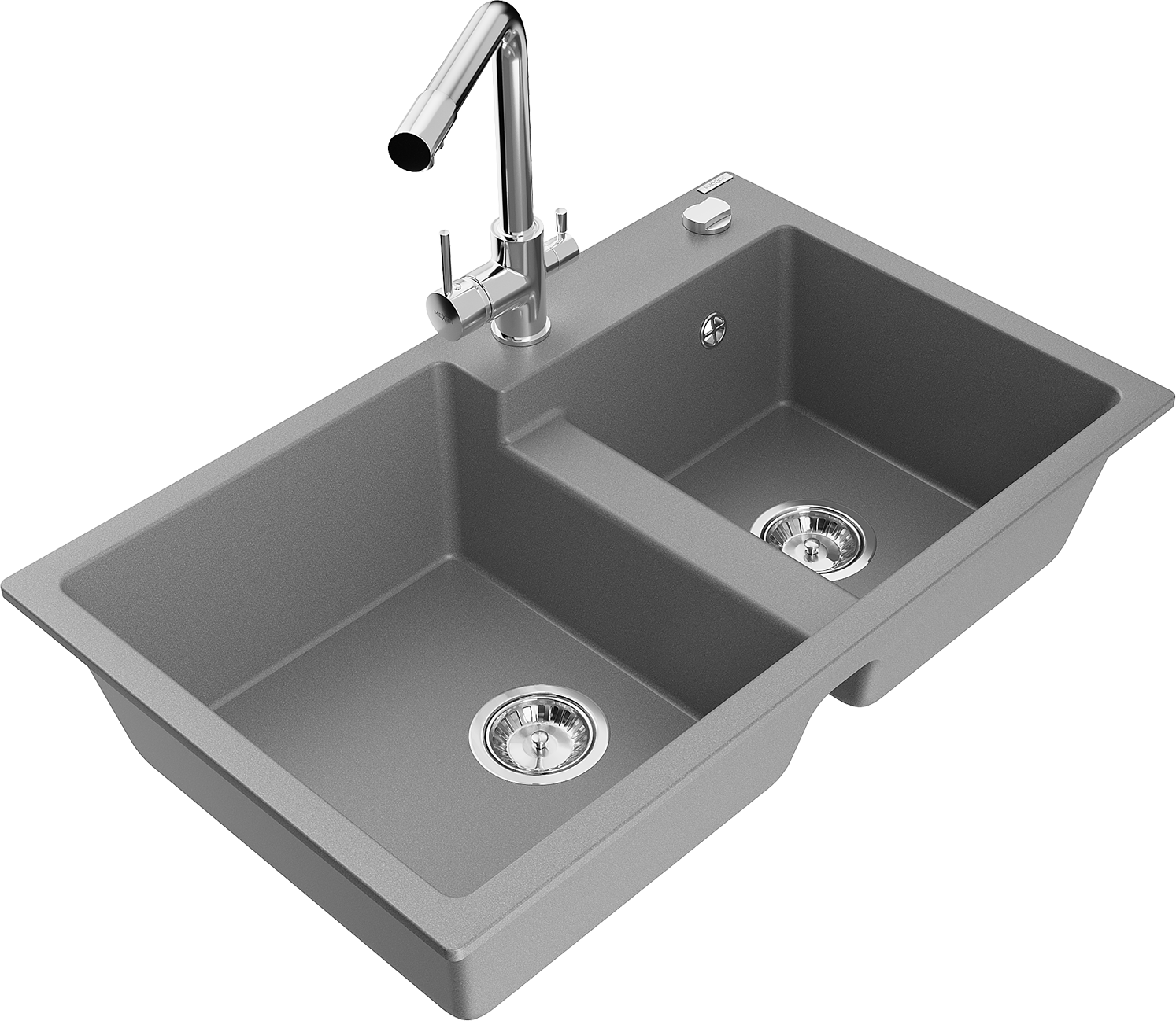 Mexen Tomas νιπτήρας γρανίτη 2 θαλάμων με μπαταρία κουζίνας Duero, γκρι