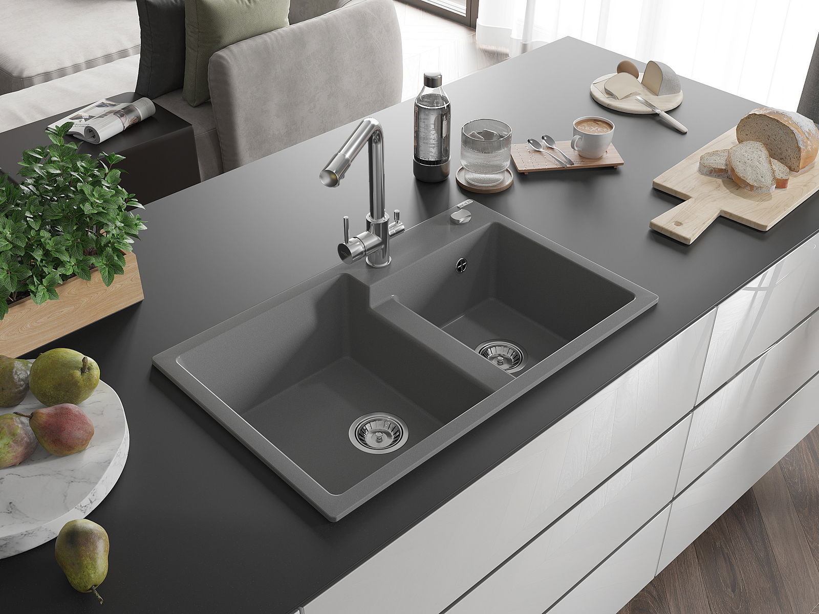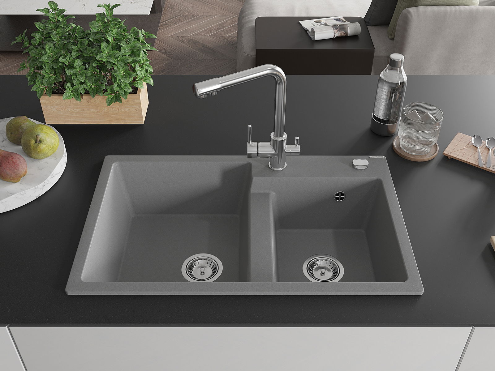 Ο νεροχύτης κατασκευάστηκε από υψηλής ποιότητας γρανίτη. Αποτελεί μια κομψή, και κυρίως πρακτική προσθήκη για κάθε κουζίνα, ανεξάρτητα από το στυλ της. Η υψηλή ποιότητα και η αντοχή του γρανίτη εξασφαλίζουν πολυετή χρήση.