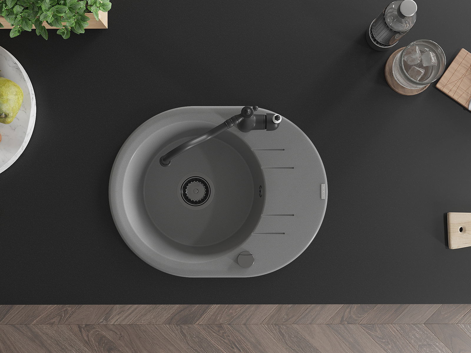Ο νεροχύτης κατασκευάστηκε από υψηλής ποιότητας γρανίτη. Αποτελεί μια κομψή, και κυρίως πρακτική προσθήκη για κάθε κουζίνα, ανεξάρτητα από το στυλ της. Η υψηλή ποιότητα και η αντοχή του γρανίτη εξασφαλίζουν πολυετή χρήση.