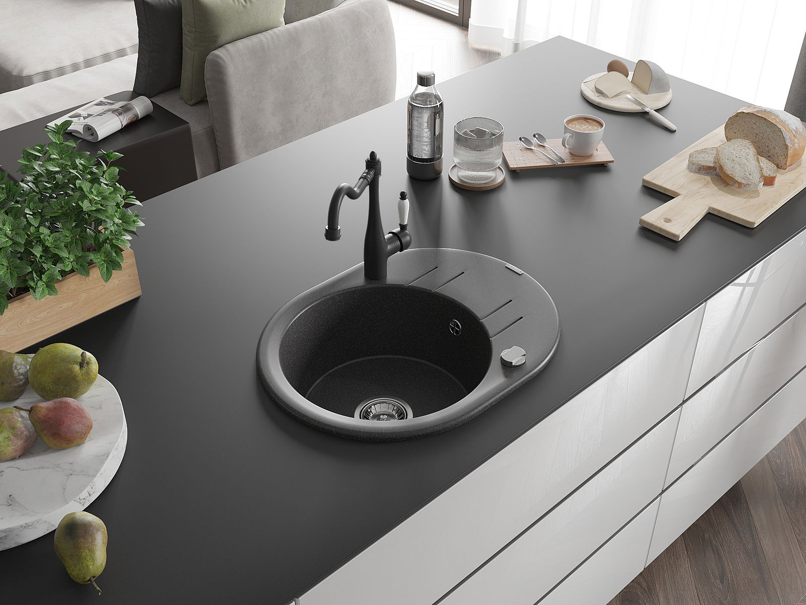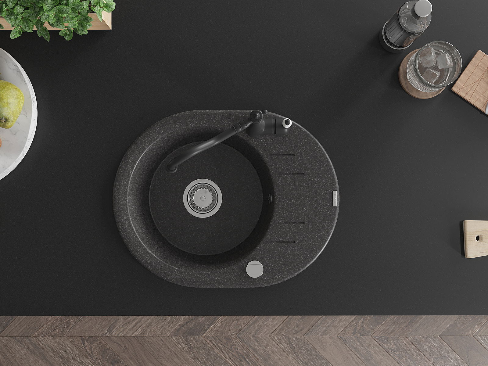 Ο νεροχύτης κατασκευάστηκε από υψηλής ποιότητας γρανίτη. Αποτελεί μια κομψή, και κυρίως πρακτική προσθήκη για κάθε κουζίνα, ανεξάρτητα από το στυλ της. Η υψηλή ποιότητα και η αντοχή του γρανίτη εξασφαλίζουν πολυετή χρήση.
