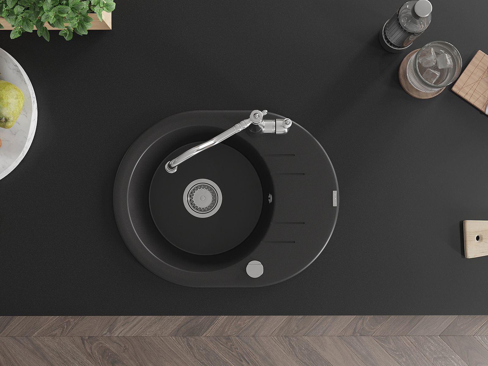 Ο νεροχύτης κατασκευάστηκε από υψηλής ποιότητας γρανίτη. Αποτελεί μια κομψή, και κυρίως πρακτική προσθήκη για κάθε κουζίνα, ανεξάρτητα από το στυλ της. Η υψηλή ποιότητα και η αντοχή του γρανίτη εξασφαλίζουν πολυετή χρήση.