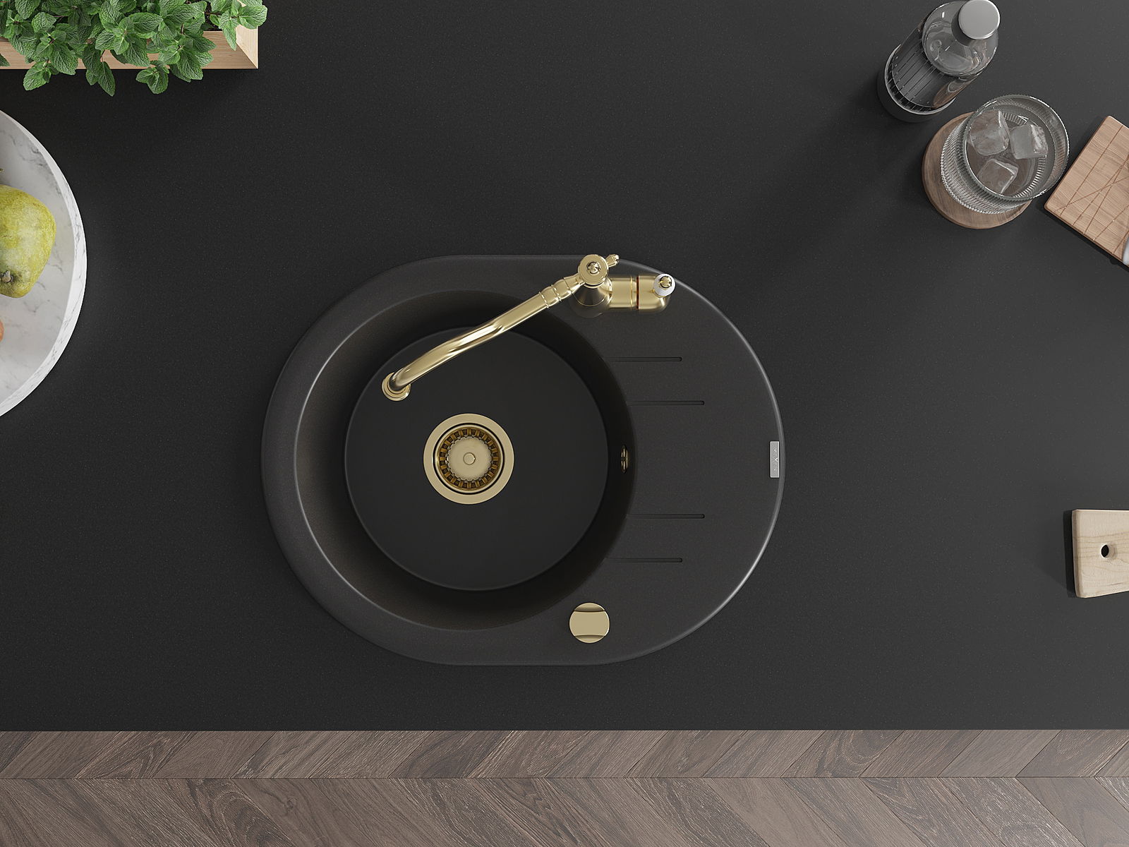 Mexen Kevin Νεροχύτης γρανίτη μονού θαλάμου με στραγγιστήρα και μπαταρία