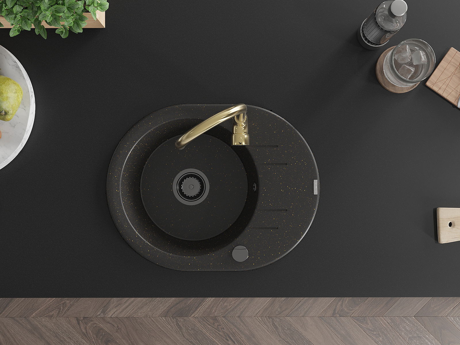 Ο νεροχύτης κατασκευάστηκε από υψηλής ποιότητας γρανίτη. Αποτελεί μια κομψή, και κυρίως πρακτική προσθήκη για κάθε κουζίνα, ανεξάρτητα από το στυλ της. Η υψηλή ποιότητα και η αντοχή του γρανίτη εξασφαλίζουν πολυετή χρήση.