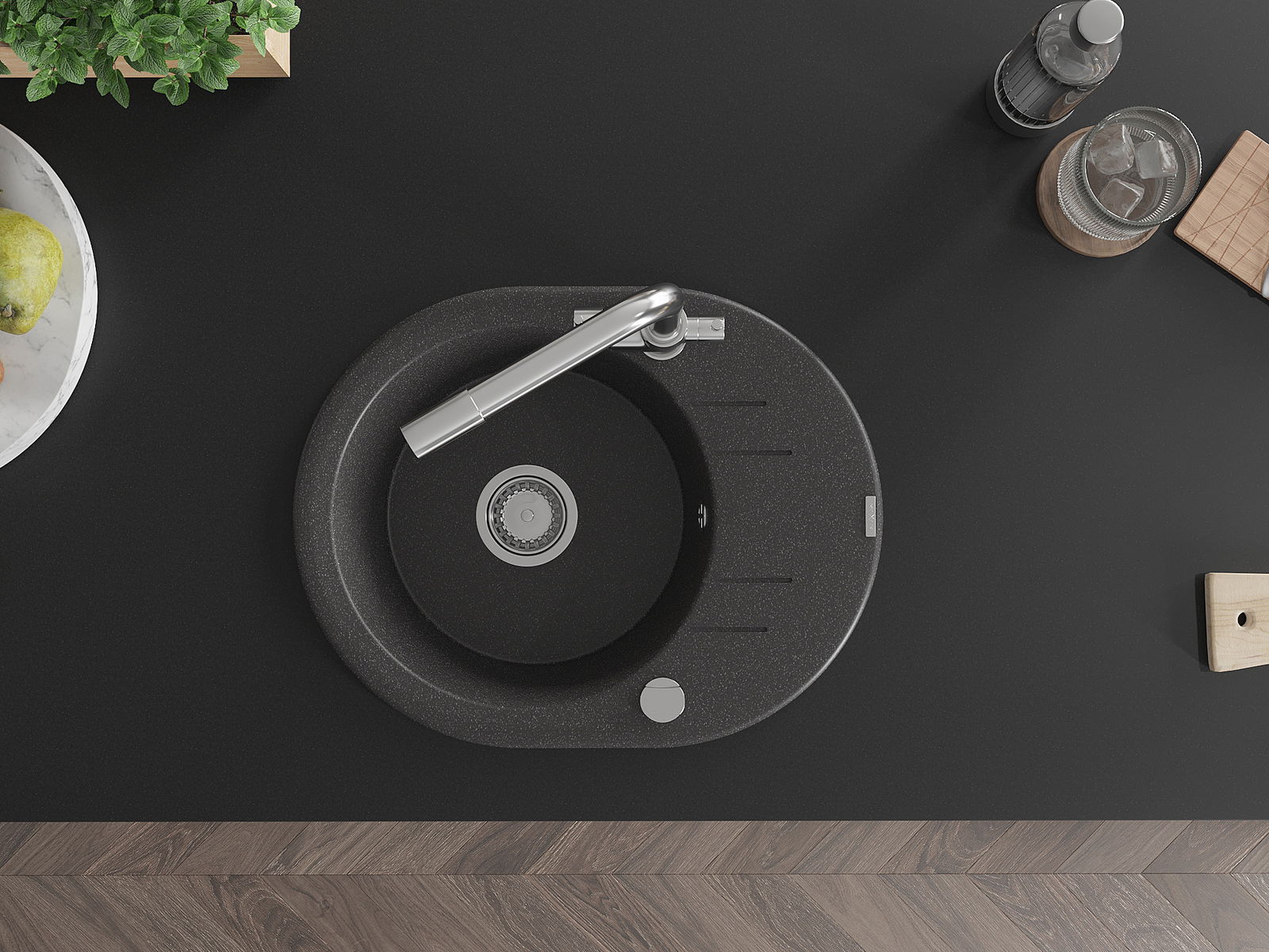 Ο νεροχύτης κατασκευάστηκε από υψηλής ποιότητας γρανίτη. Αποτελεί μια κομψή, και κυρίως πρακτική προσθήκη για κάθε κουζίνα, ανεξάρτητα από το στυλ της. Η υψηλή ποιότητα και η αντοχή του γρανίτη εξασφαλίζουν πολυετή χρήση.