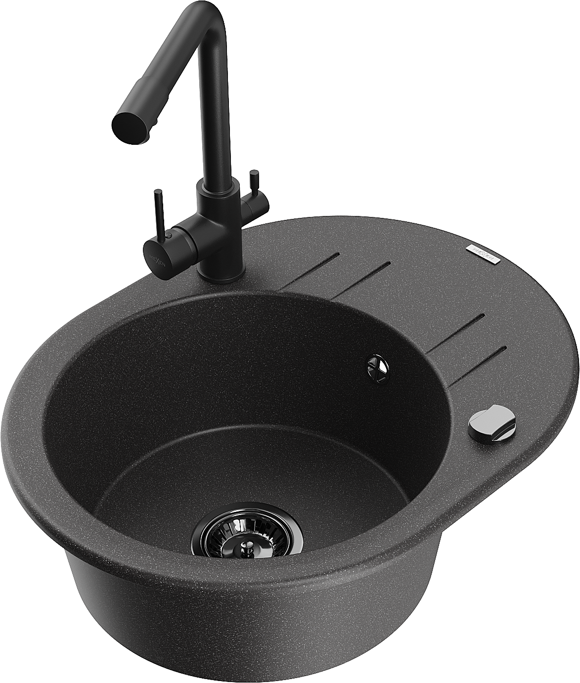 Mexen Kevin νεροχύτης γρανίτη 1-θαλάμου με στραγγιστήρα και μπαταρία