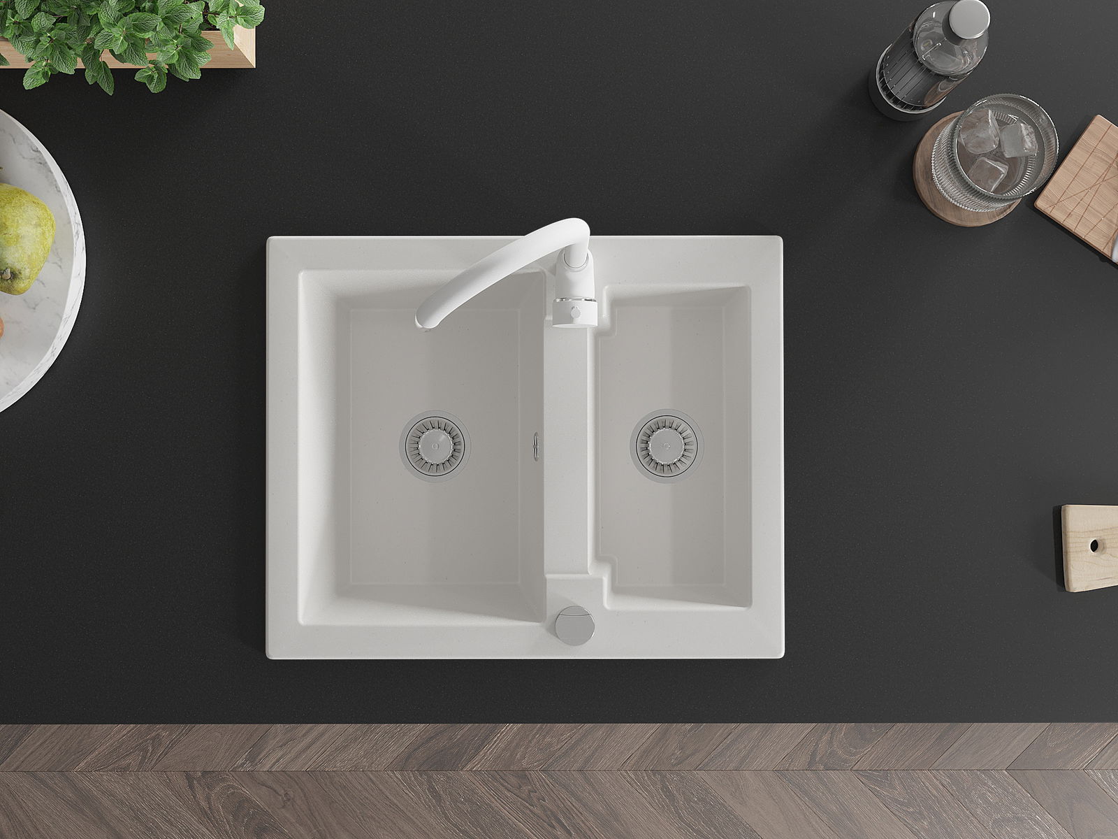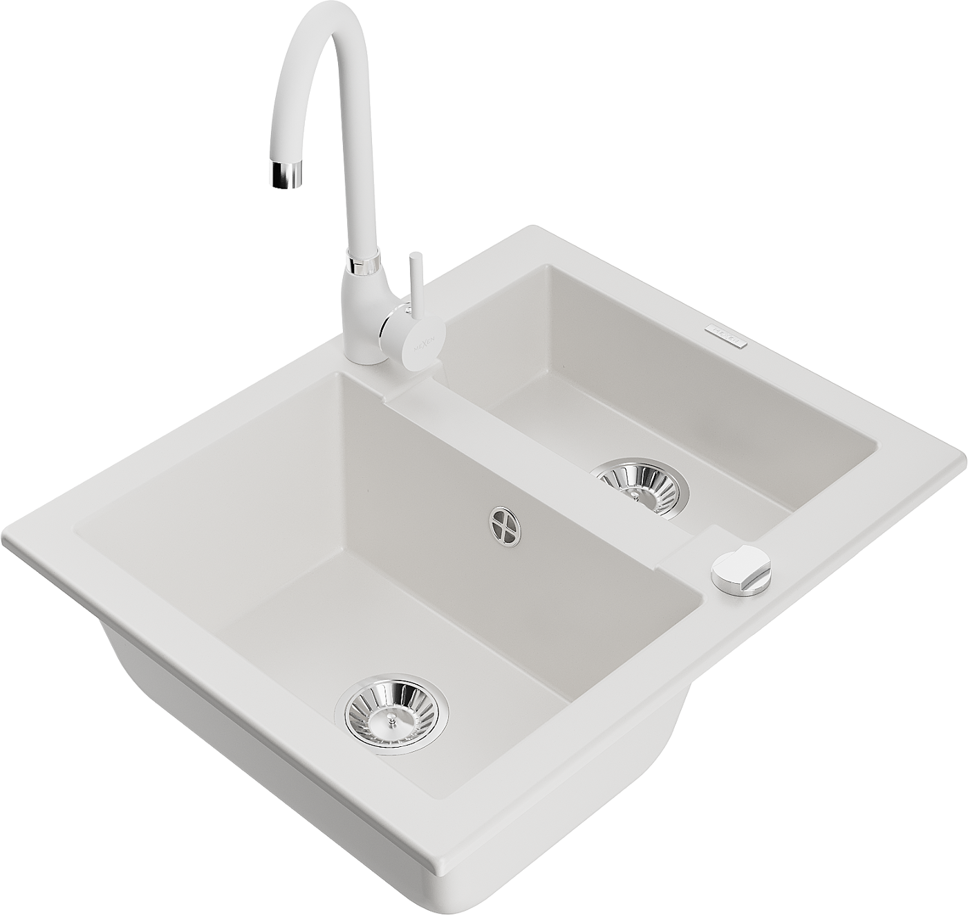 Mexen Carlos νεροχύτης γρανίτη 1,5 θάλαμος με μπαταρία κουζίνας Telma, λευκός